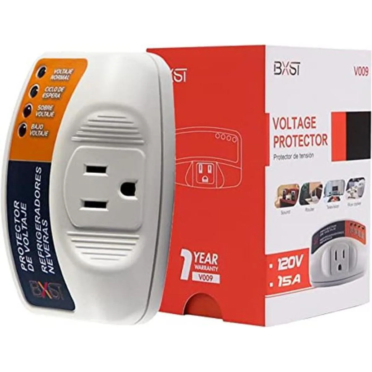 BXST Protector de voltaje de enchufe de una salida para el hogar que protege contra sobretensiones de alto y bajo voltaje para refrigerador, TVPC, 120 V 1800 W paquete de 1
