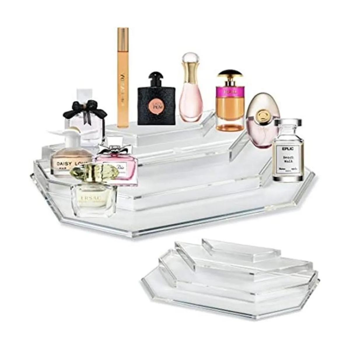 ByAlegory Organizador de perfumes acrílicos y aceites perfumados y exhibición de tocador de 4 niveles para almacenar perfumes de belleza, Transparente, Mini Perfumes 1 Single
