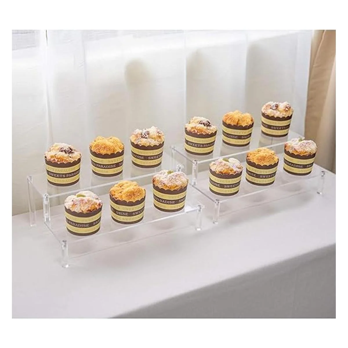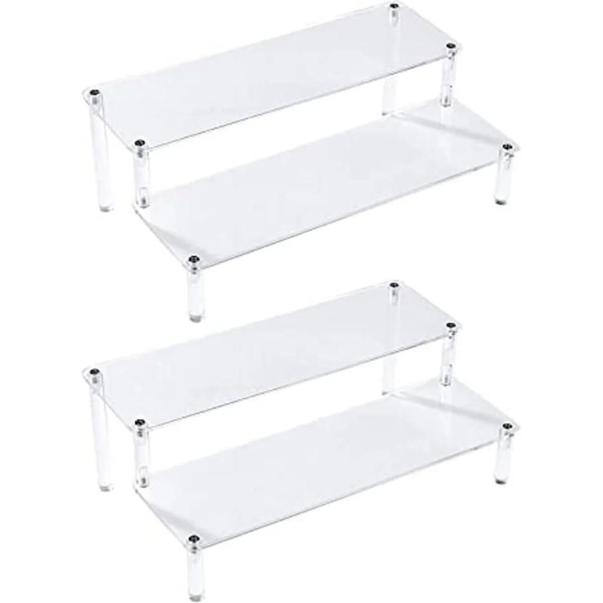 BYCY Paquete de 2 estantes de exhibición de acrílico transparente de 2 niveles para figuras de joyas de postre, soporte transparente para cupcakes, paquete de 2 12 x 6.9 x 4.25 pulgadas