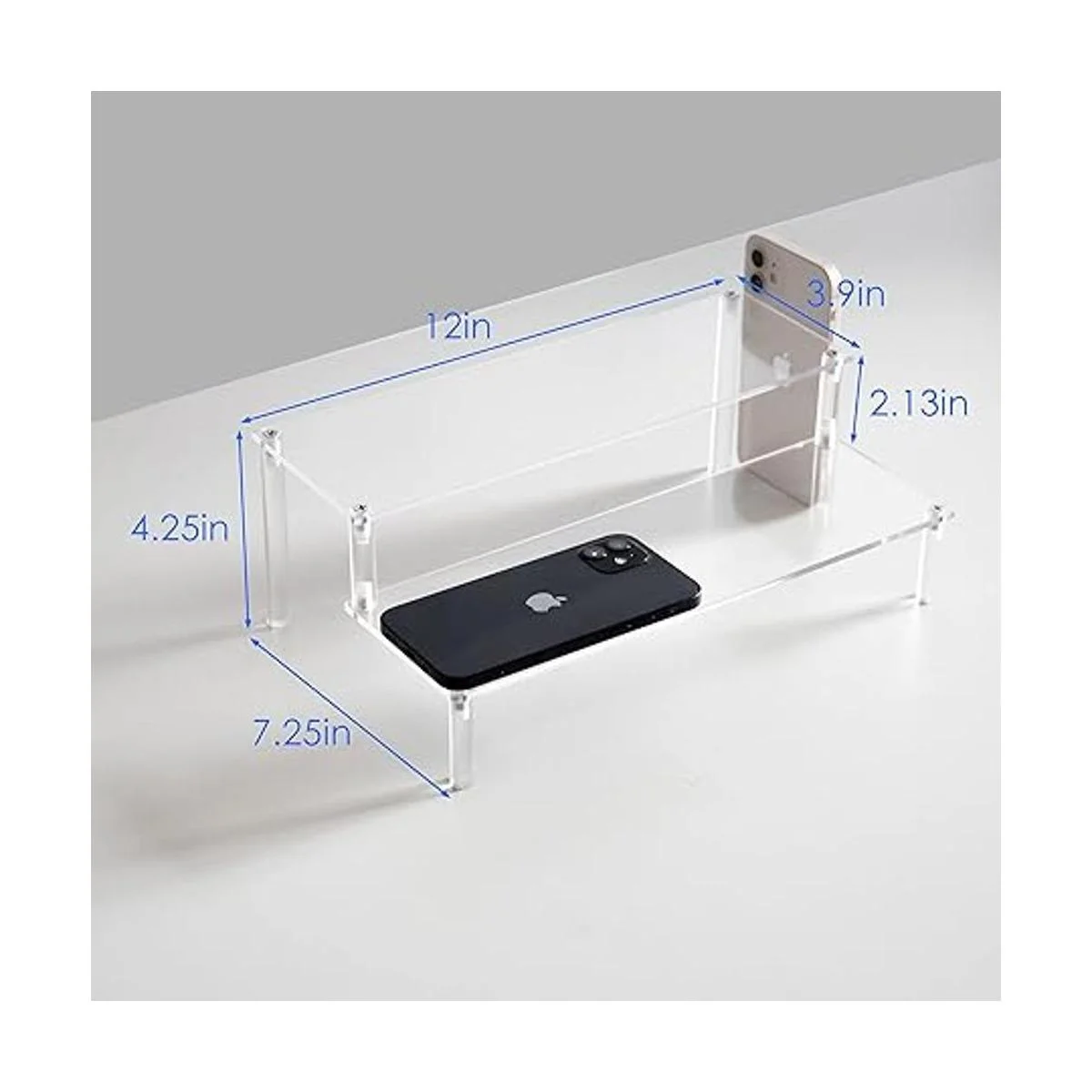 Tamaño: cada tablero acrílico mide 3.9 pulgadas de ancho x 12 pulgadas de largo, 2 pulgadas de alto en cada suelo, 12 pulgadas de largo x 6.9 pulgadas de ancho x 4.2 pulgadas de alto para todo este tamaño de estante de exhibición. Apto para casi todos los estantes