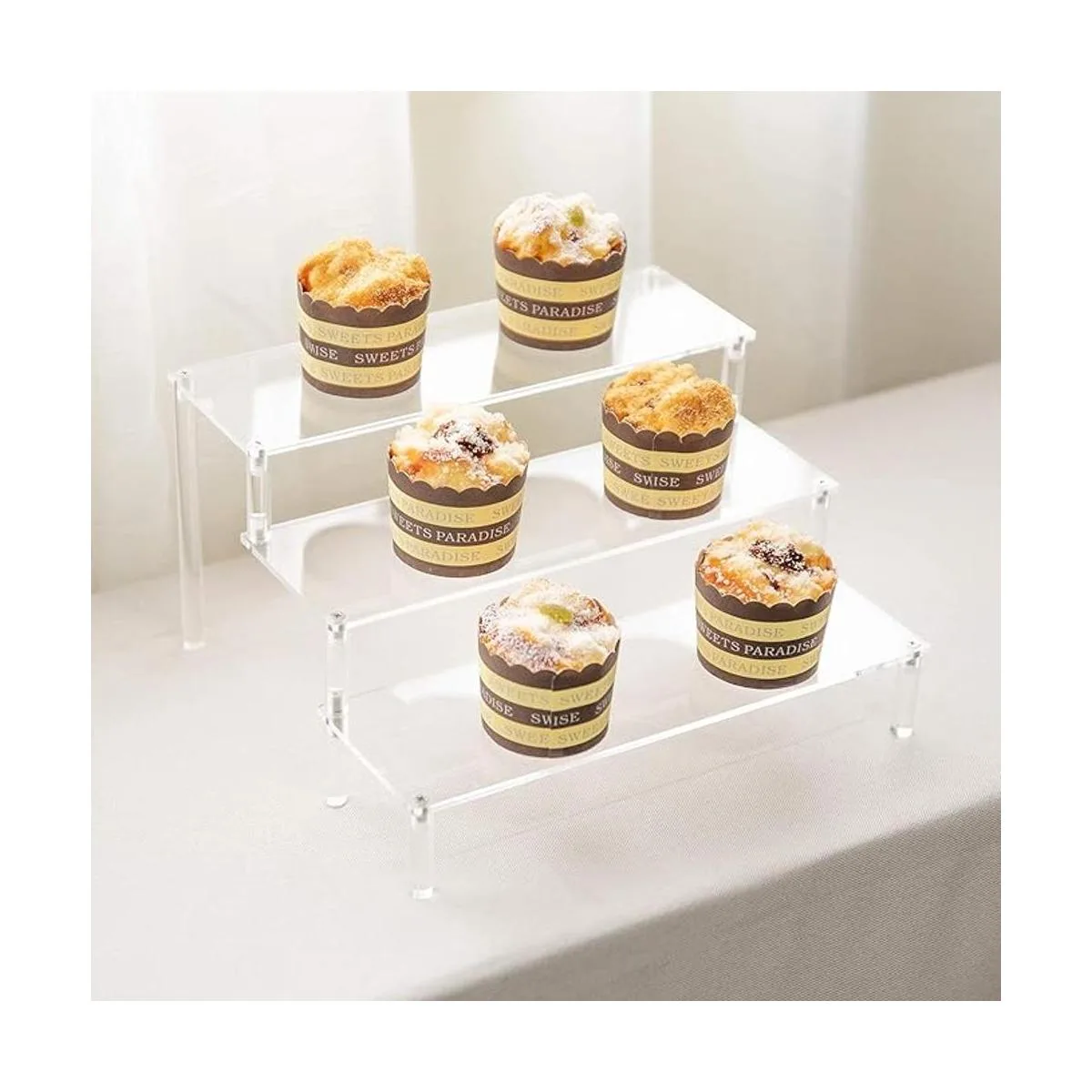 BYCY Soporte de exhibición de acrílico transparente, soporte de exhibición de perfumes, soporte de postres de 3 niveles, elevadores de exhibición de magdalenas de 3 niveles para organizador y decoración