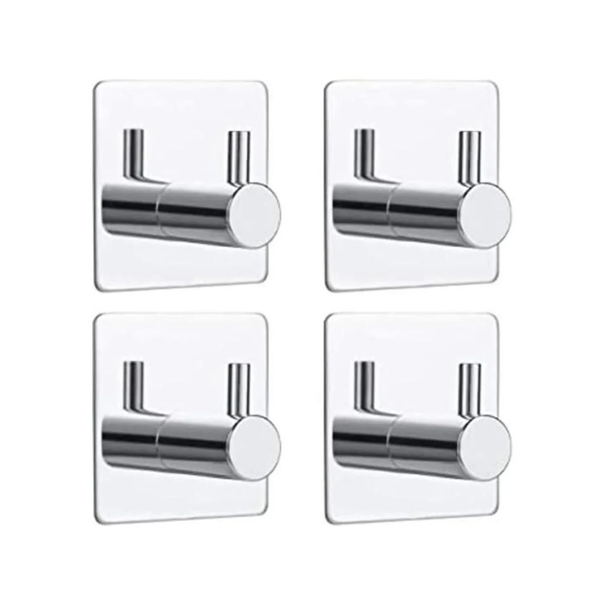 Bylion Paquete de 4 ganchos adhesivos de pared plateados, ganchos adhesivos cromados para toallas de baño, ganchos de pared de acero inoxidable SUS 304, ganchos resistentes al agua, ganchos para bata para baño, cocina, dormitorio