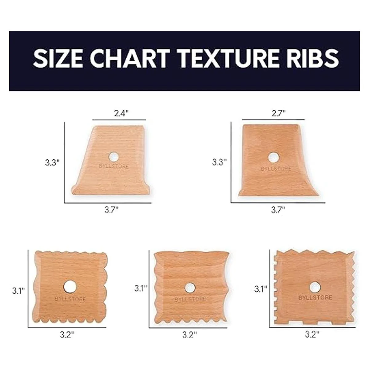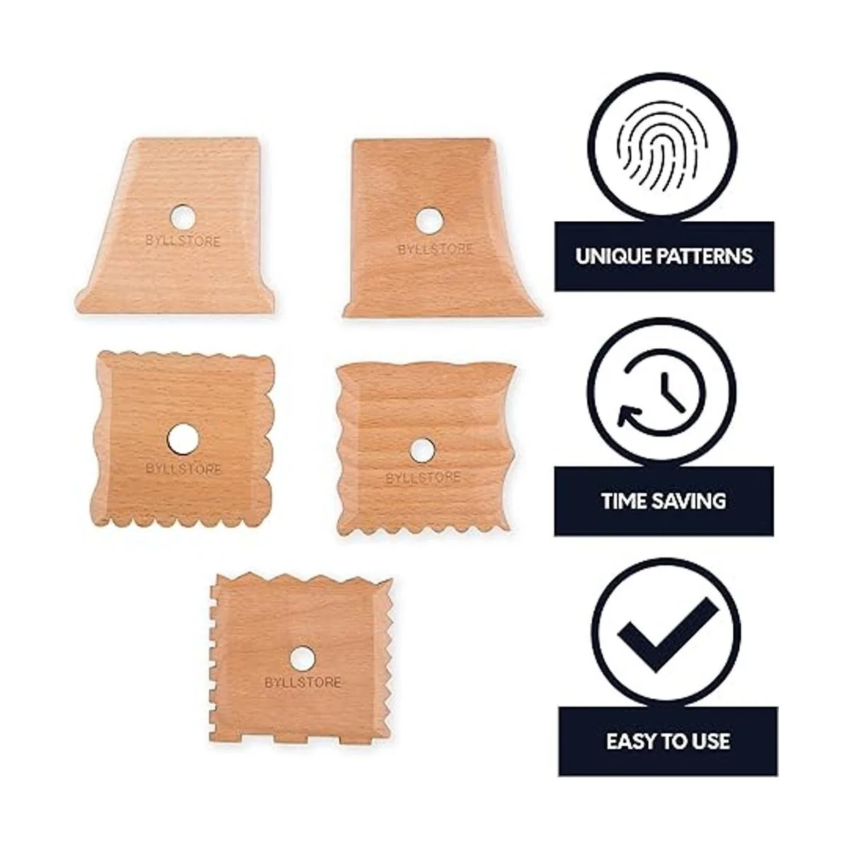 Byllstore Herramientas moldeadoras de pies de cerámica y varillas de textura Paquetes de 2, 3 y 5 Recorte de textura para arcilla y cerámica Madera maciza de haya paquete de 2