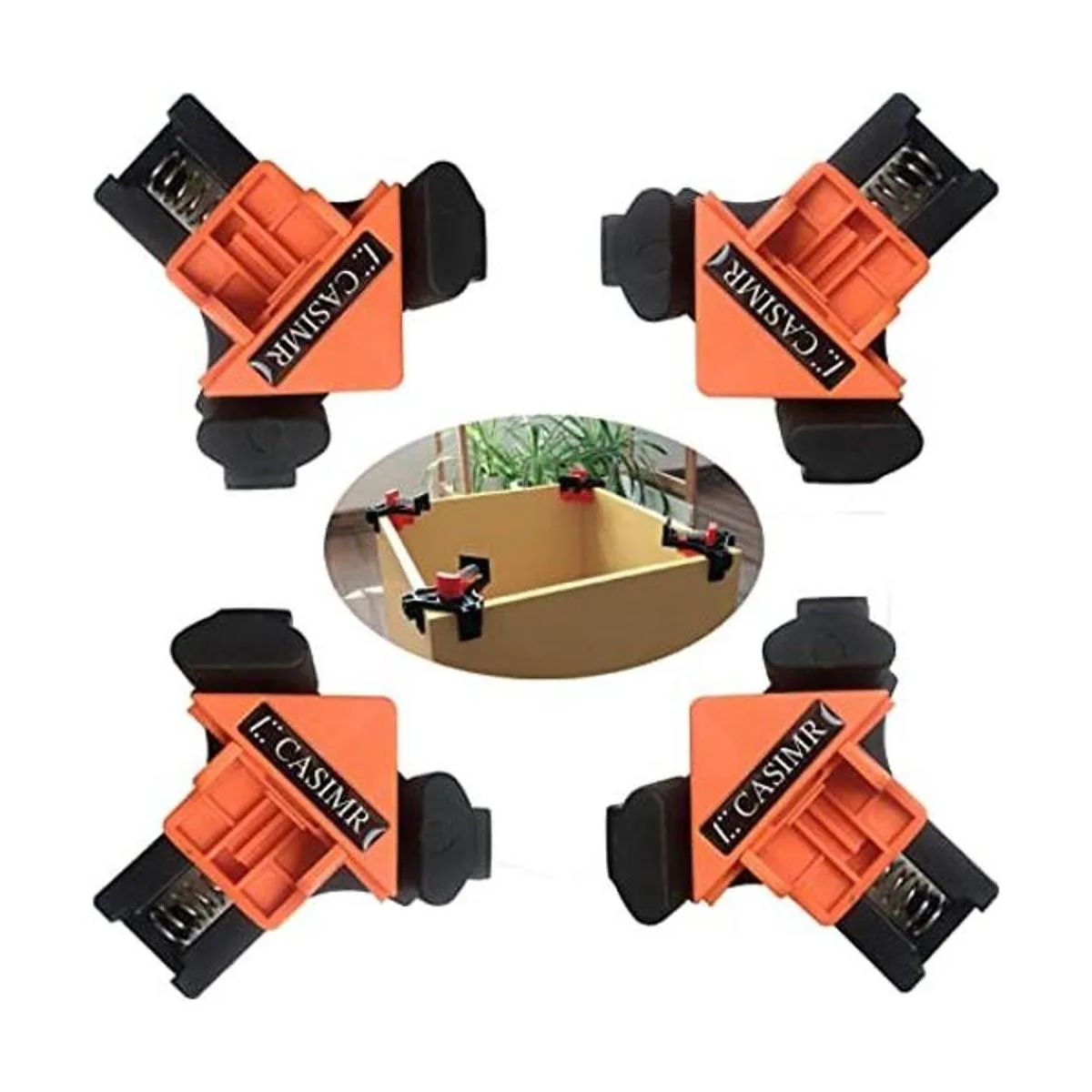 C CASIMR Abrazadera de esquina de 90 grados, 4 abrazaderas ajustables de ángulo recto con resorte de una sola manija, herramienta de abrazadera de clip de carpintería oscilante