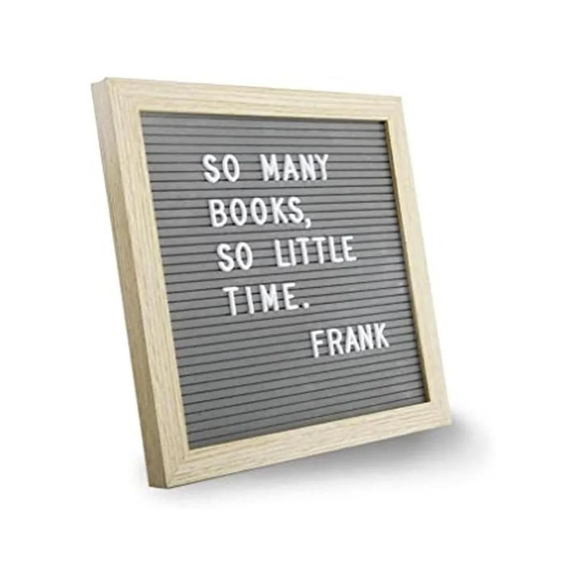 C Crystal Lemon Tablero de letras de fieltro, 10 x 10 pulgadas, tablero de madera de mensajes intercambiables, marco de madera, montaje en pared o apoyo independiente color gris