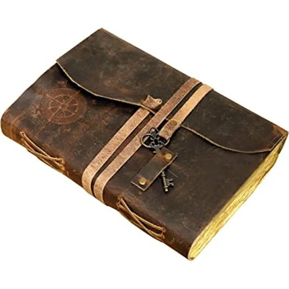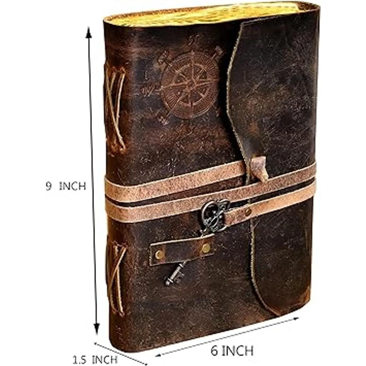 C CUERO Diario de cuero vintage con brújula, antiguo, encuadernado a mano, borde picoteado, cuaderno de dibujo, gran regalo para hombres y mujeres 8 x 10 pulgadas