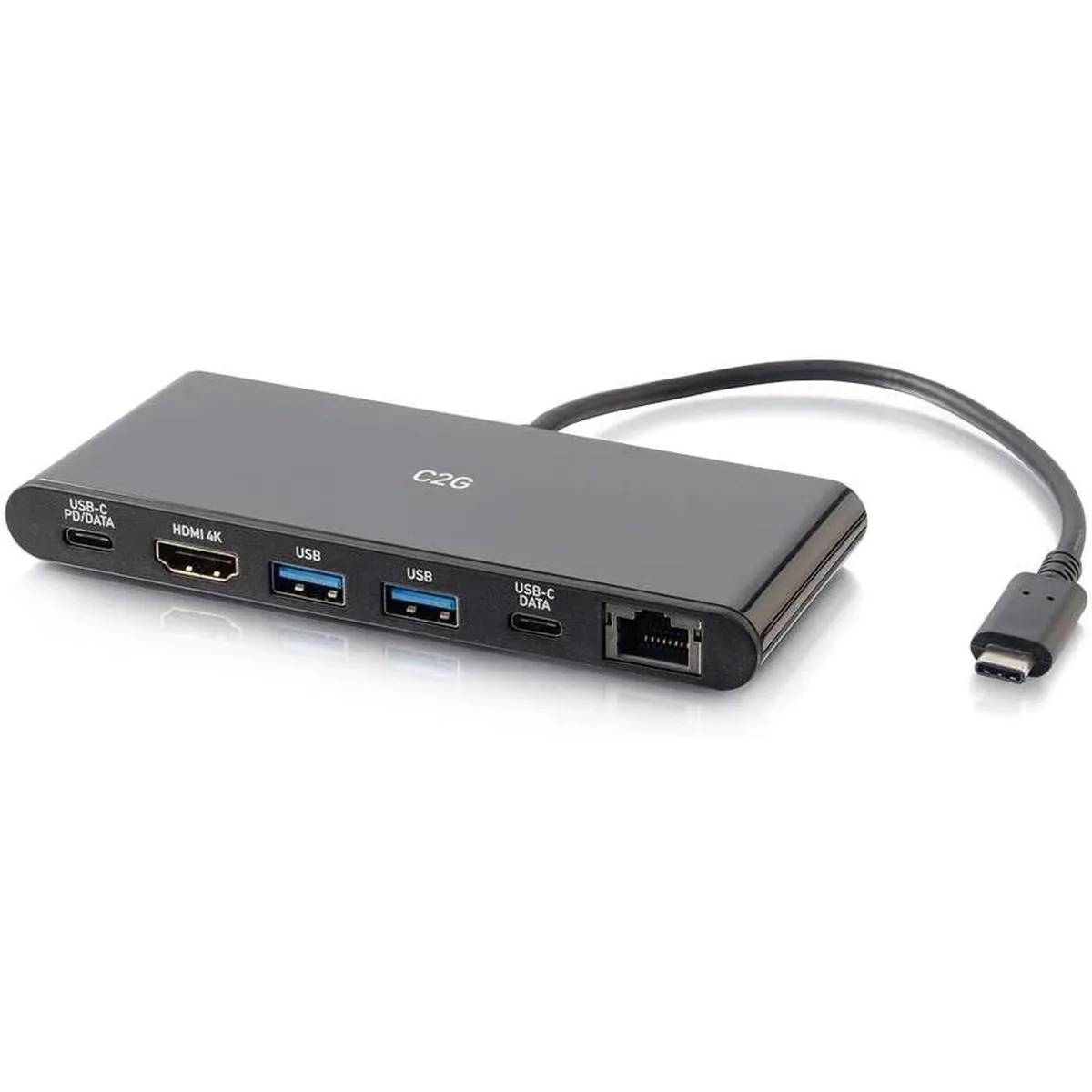 C2G Estación de acoplamiento, estación de acoplamiento USB C, estación de acoplamiento 4K, compatible con portátiles USBC y Thunderbolt 3, negro, cables para llevar 28845
