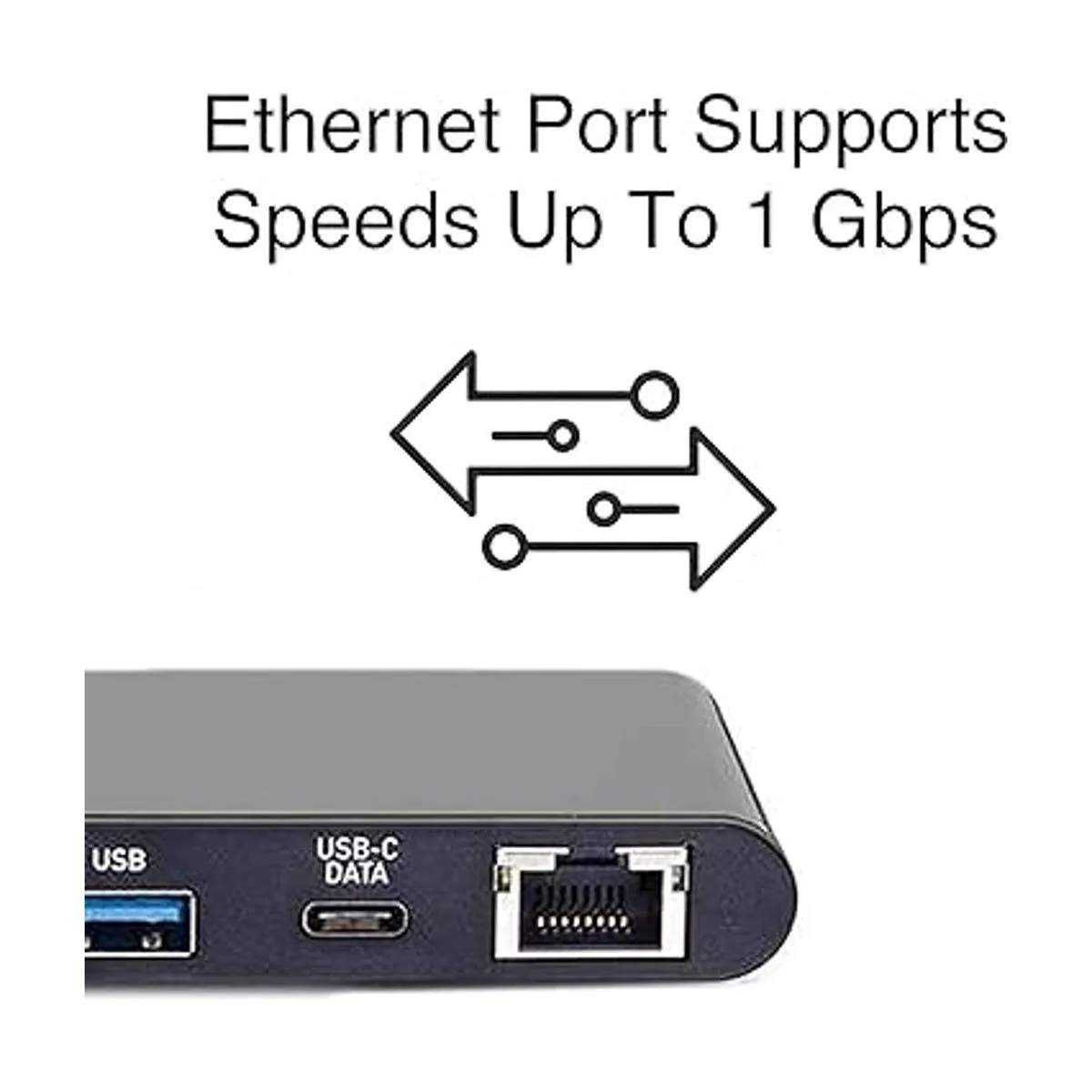 Uso: la estación de acoplamiento 6 en uno te permite conectarte a una pantalla 4K con puerto HDMI 4K; transfiere datos de hasta 5 Gbps desde dispositivos de almacenamiento conectados a través de puertos USB C y USB A; alimenta un portátil o tableta con hasta 60 W de potencia