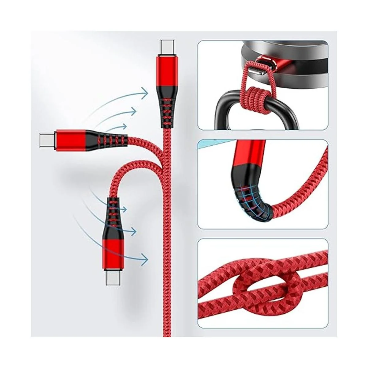 Diseño de nailon sin enredos: Diseño trenzado de nailon sin enredos, con una vida útil probada de más de 10 000 dobleces. El cable tipo C trenzado de nailon de alta calidad añade durabilidad y no se enreda.