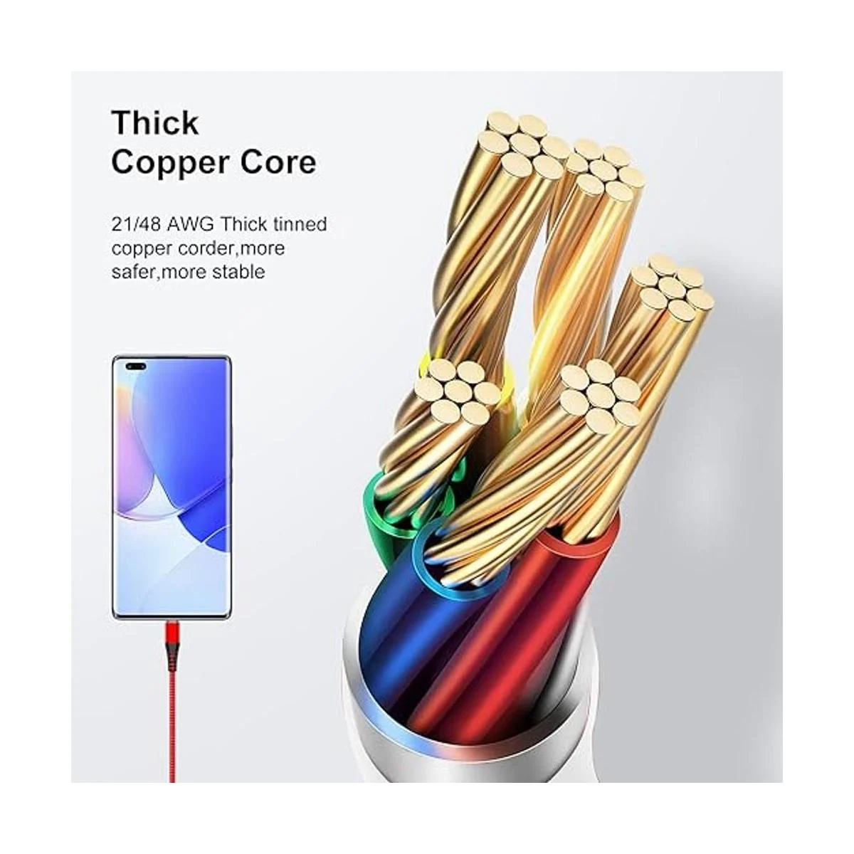 Incluye: Proporcionamos 3 cables USB 2.0 tipo C de nailon trenzado de 6 pies de largo.