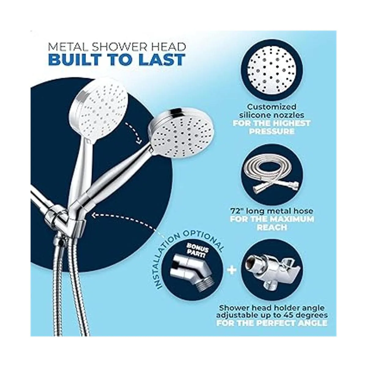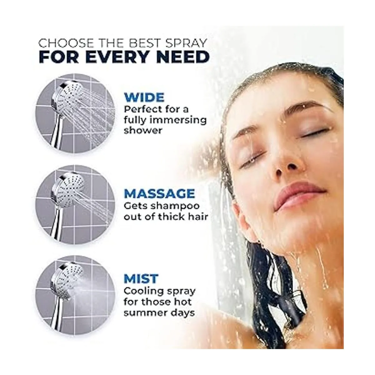 Cabezal de ducha de mano de 3 rociadores de metal con manguera y soporte, cromado, selecciona entre aerosoles anchos, de masaje y niebla, cabezal de ducha de mano de bajo flujo de 1.8 GPM