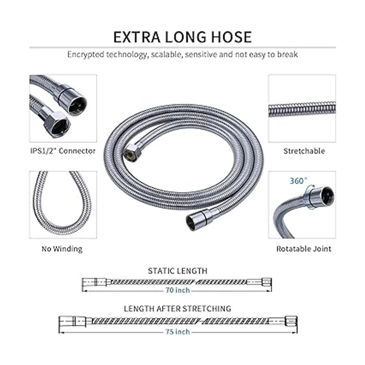 Manguera extra larga y superflexible: 70 pulgadas se estira a 75 pulgadas. Slinky, sin enrollar; la ducha de piel para bebés es simplemente simple