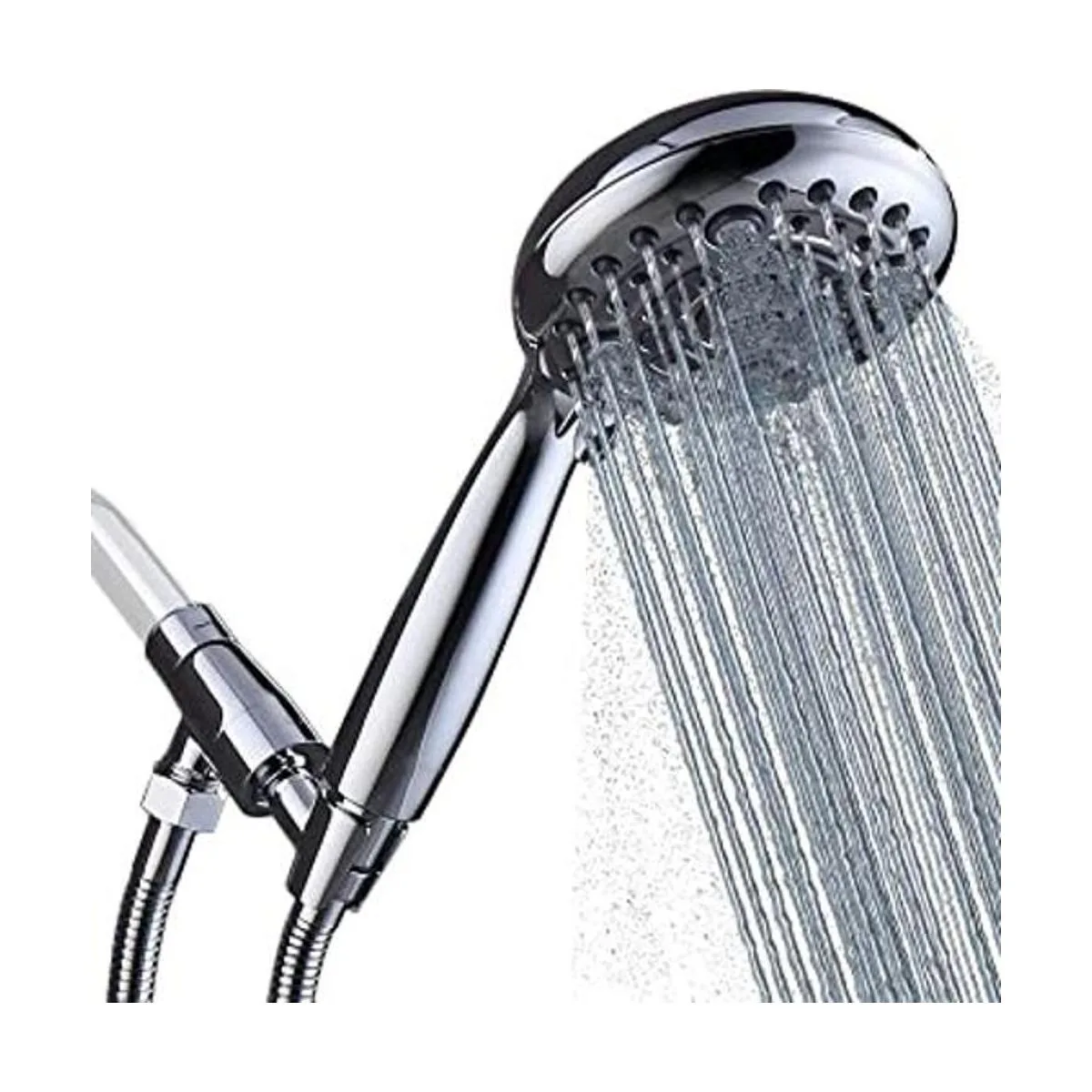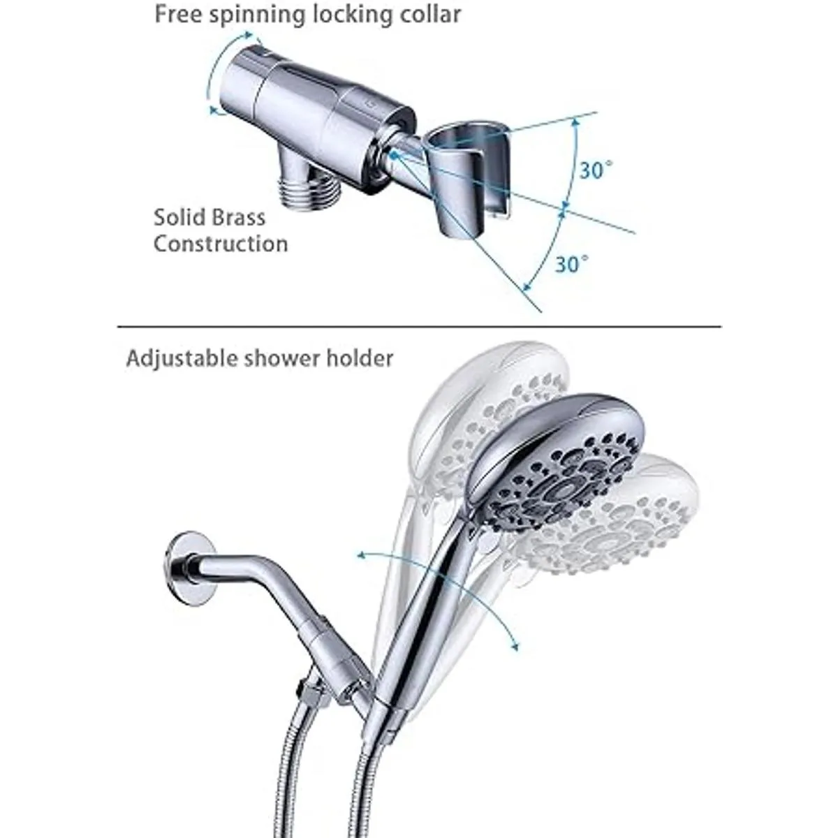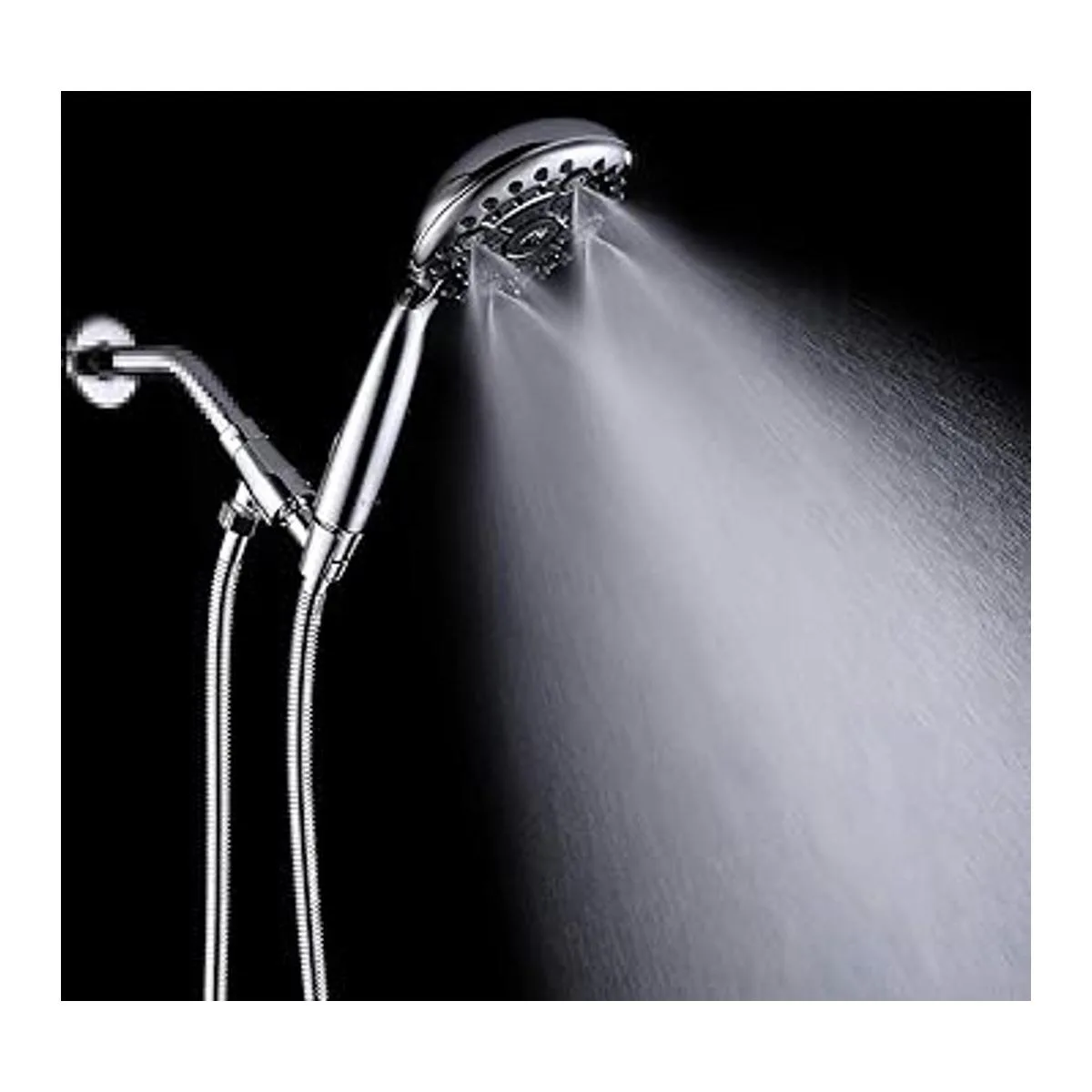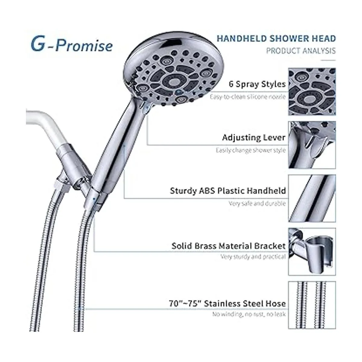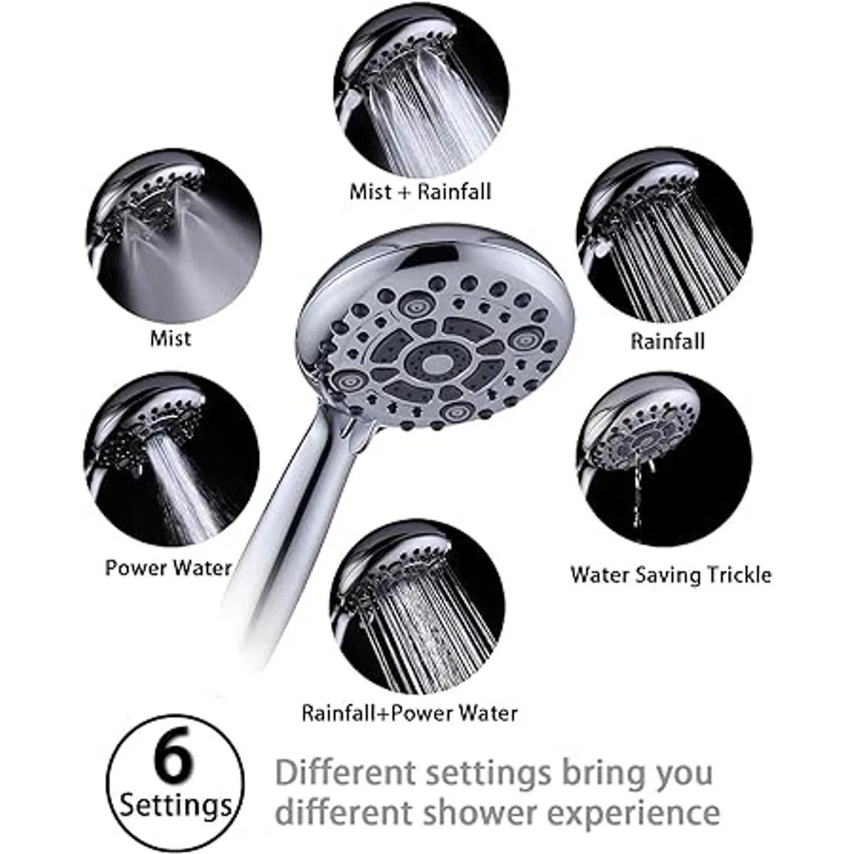 Cabezal de ducha de mano de alta presión, 6 ajustes de pulverización, cabezal de ducha desmontable de mano de 4.9 pulgadas, cara con manguera flexible de acero inoxidable extra larga de 70 pulgadas y soporte ajustable de metal cromo