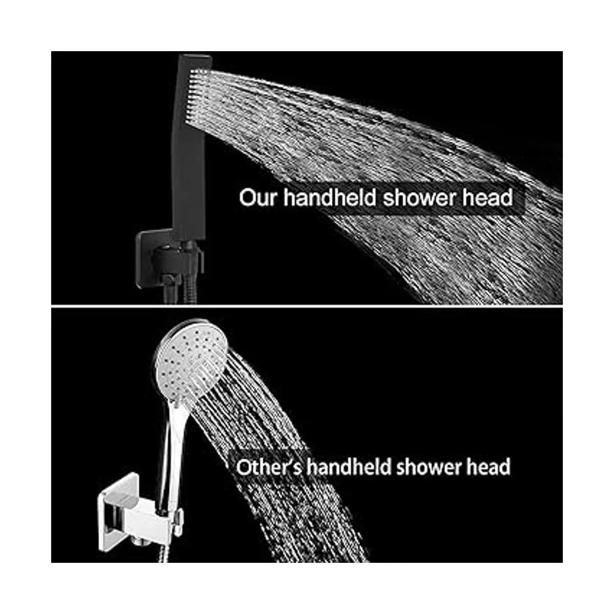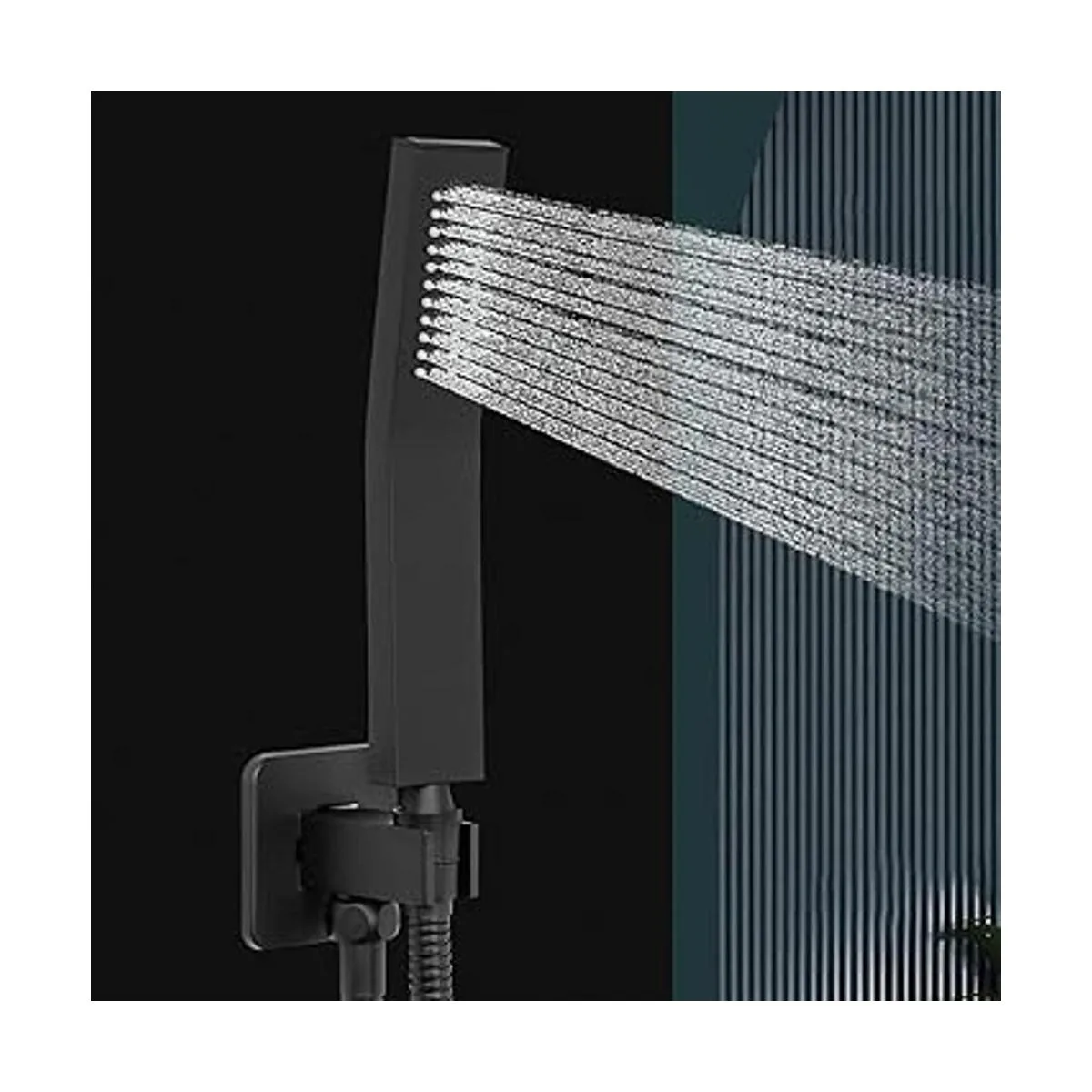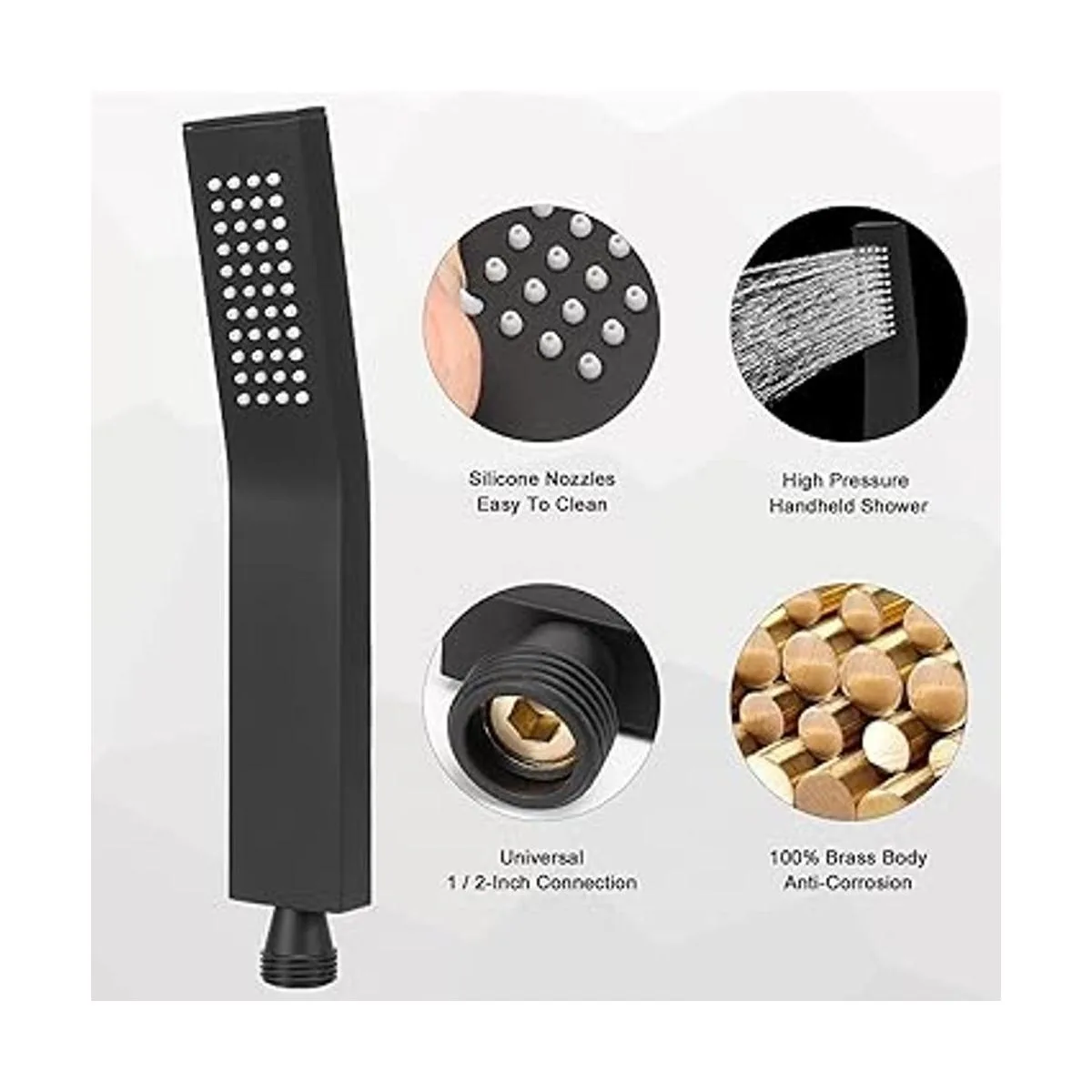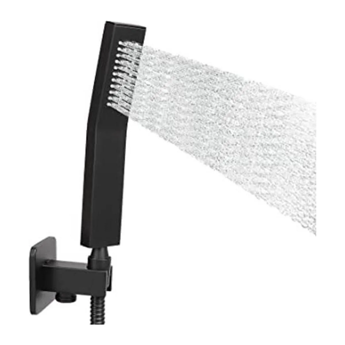 Cabezal de ducha de mano de latón, lujoso kit de cabezal de ducha de alta presión con conector de pared y juego de manguera, para sistema de ducha de baño, estilo cuadrado contemporáneo negro mate