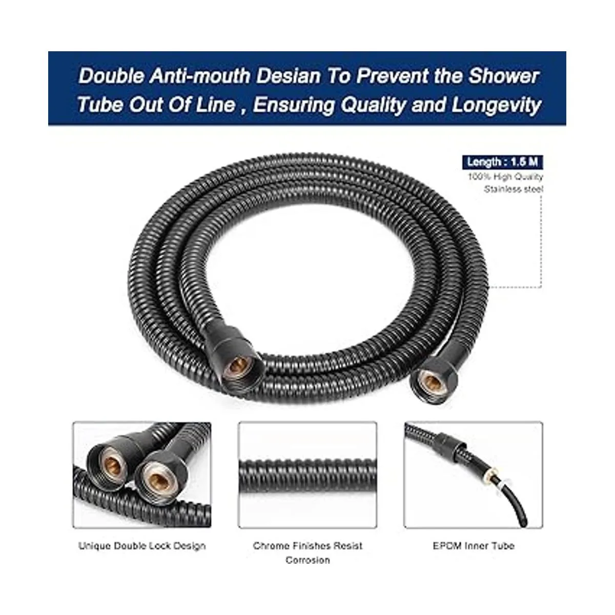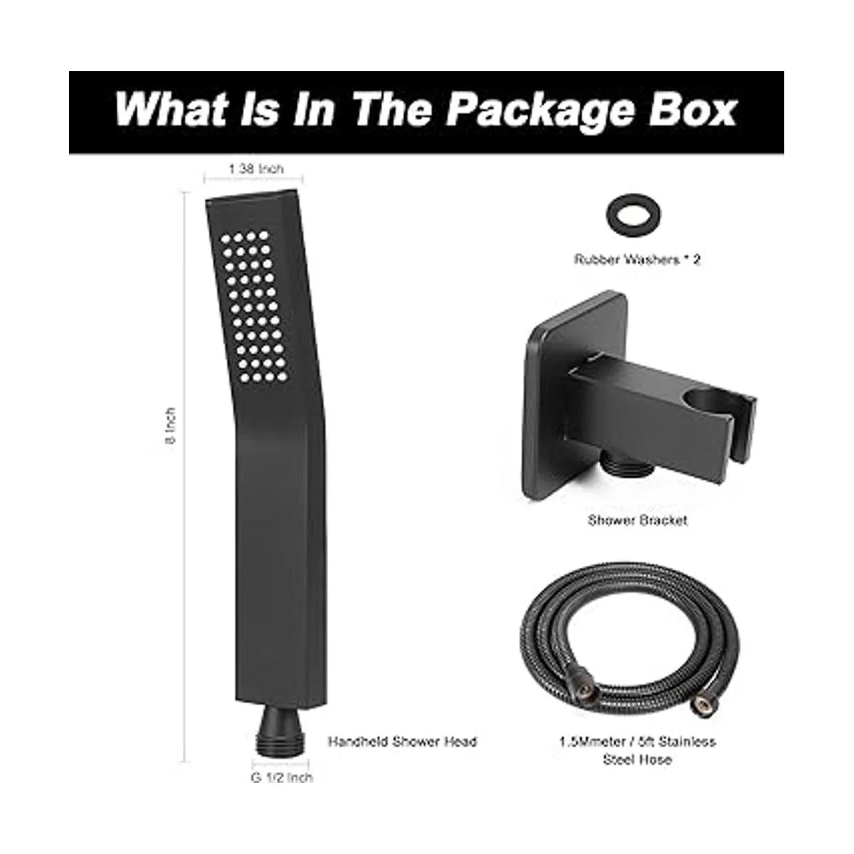 Manguera de acero inoxidable de 5 pies: ofrece una manguera flexible superior y de mayor alcance que otras duchas de mano. También es ideal para bañar a niños, lavar mascotas y aplicaciones de limpieza. El conector de 1/2 pulgada se adapta a cualquier brazo de ducha universal. Tuercas de manguera de metal sólido, filtro y arandela aseguran una conexión fiable a prueba de fugas.