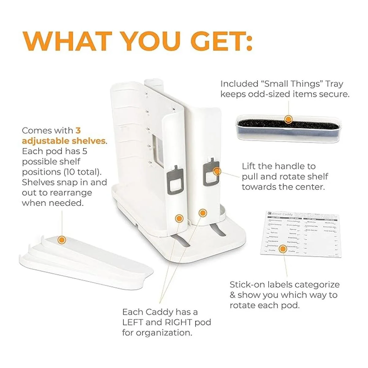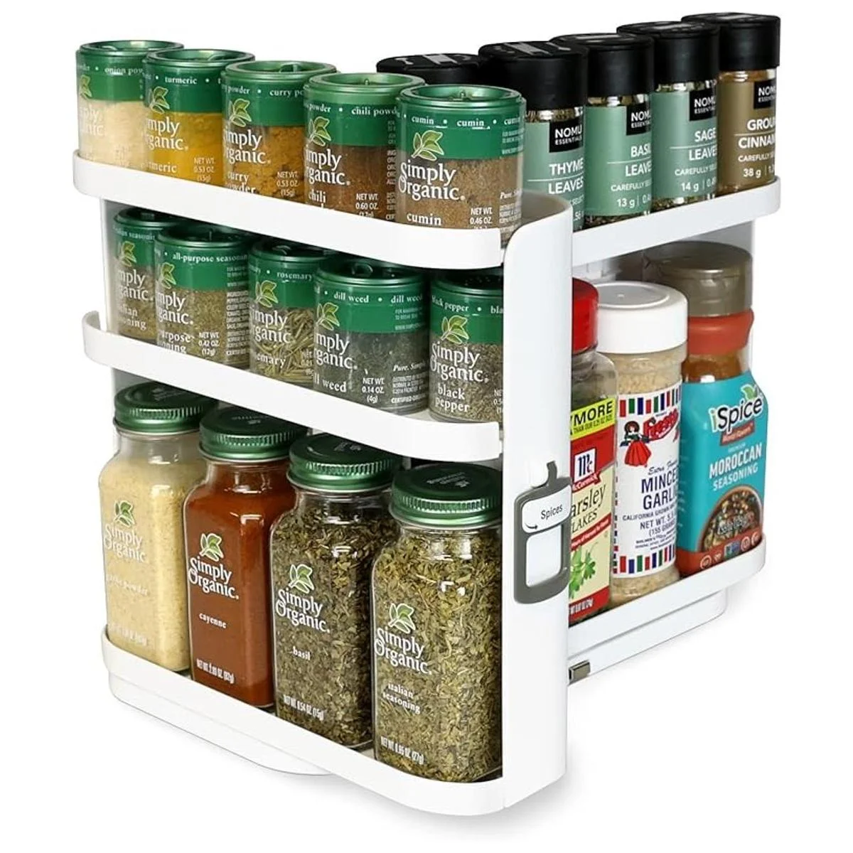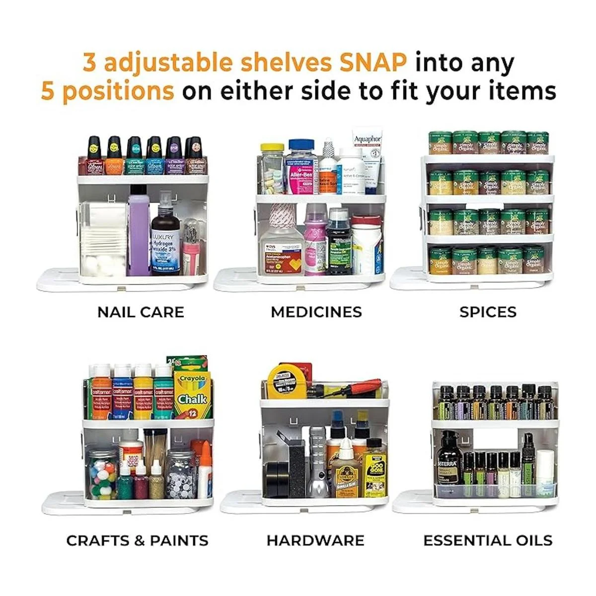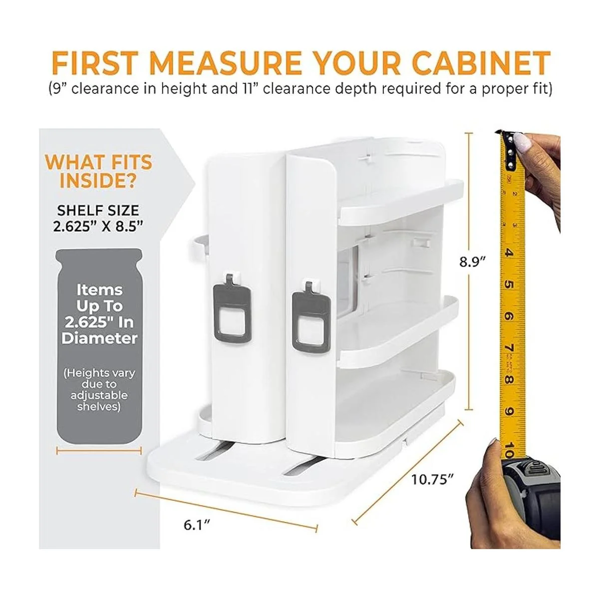 Cabinet Caddy SNAP blanco Organizador de especias para tirar y girar 3 estantes a presión ajustables para 5 niveles de almacenamiento Diseño modular magnético Base antideslizante 8.9 pulgadas de alto x 6.1 pulgadas de ancho x 10.8 pulgadas de profundidad