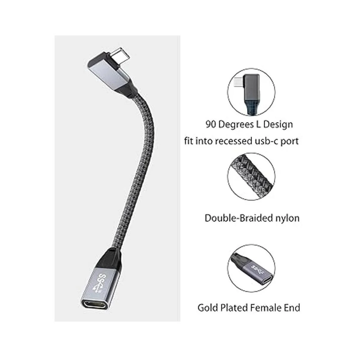 Cable alargador USB C macho a hembra de ángulo recto de 90 grados, USB tipo C 3.1 Gen 2 100 W, 10 Gbps, 4 K Video, Awnuwuy Cable extensor de 90 grados para hub USBC, DockLaptopauriculares, MacBook Pro 2019, iPad Pro