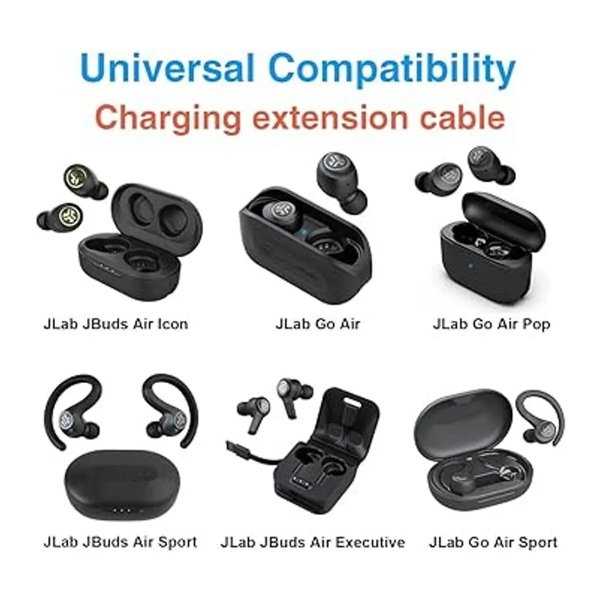 Cable cargador de extensión USB macho a hembra de 3.3 pies para JLab Go AiPopSport, JLab Epic Air ANCSport ANC, JLab JBuds AirSportExecutivePlay GamingANC Wireless Bluetooth Auriculares adaptador de funda de carga