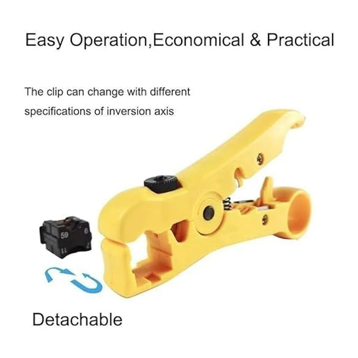 Muy fácil de Strip Cable una vez que ajustar la profundidad de corte para cabezal de cable: Pelacables Alicates, ajustable que se puede girar y ajustar en cuatro tipos de cables coaxiales.