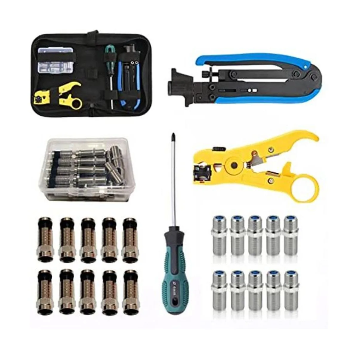 Cable coaxial y crimpadora para RG6 RG5962 y herramienta de compresión coaxial 10 unidades F Conectores de compresión.