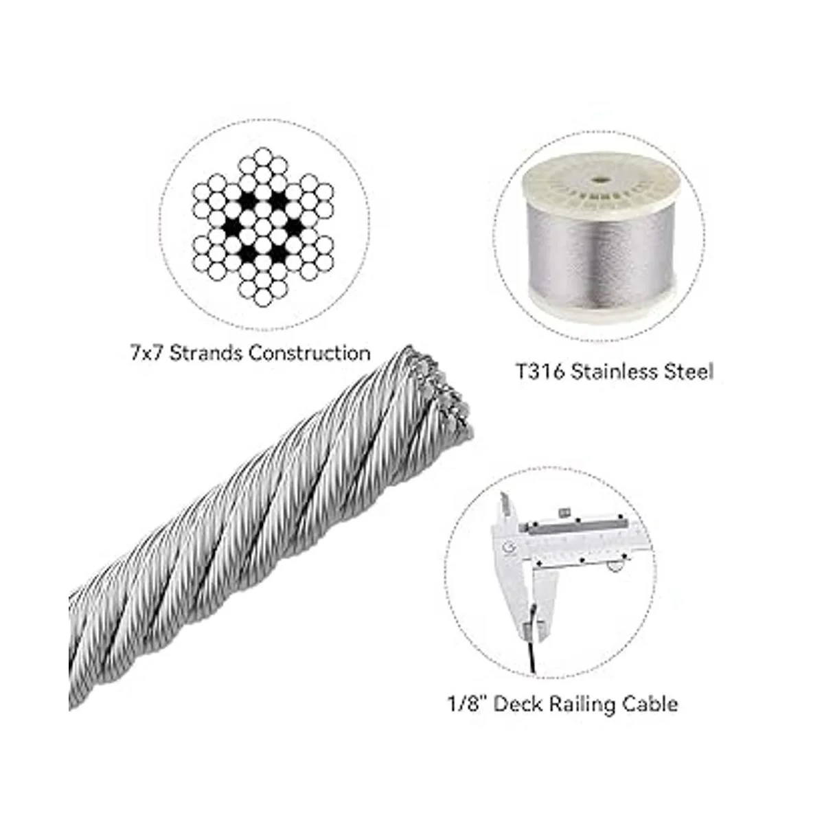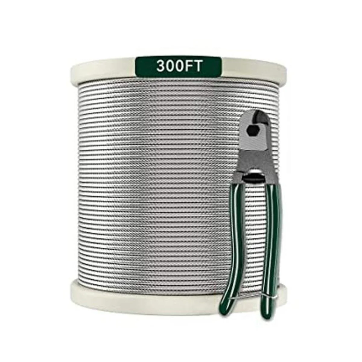 Cable de acero inoxidable 18 con cortador, construcción de hebras de 7 x 7, acero inoxidable T316 para barandilla de cubierta, valla de porche, cadena de luces de alambre colgante de 300 pies