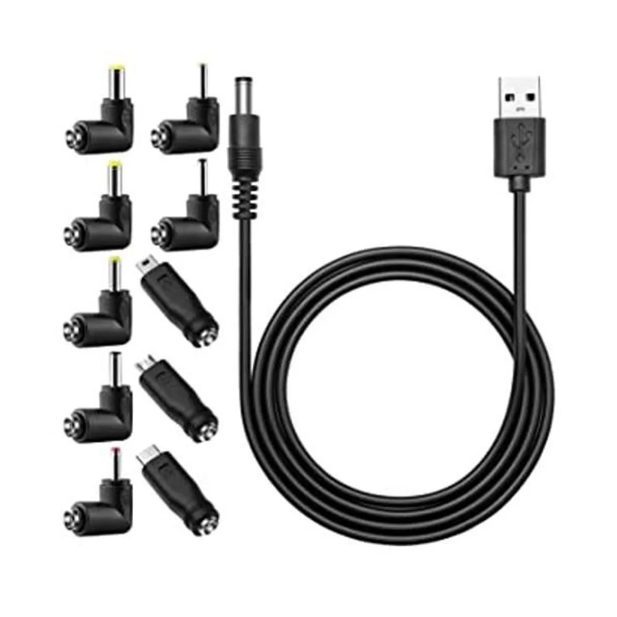Cable de alimentación CC de 5 V, USB a CC de 0.217 x 0.083 in con 10 puntas de conector 5.5 x 2.5, 4.8 x 1.7, 4.0 x 1.35, 3.5 x 1.35, 3.0 x 1.1, 2.5 x 0.7, micro USB, tipo C, mini USB