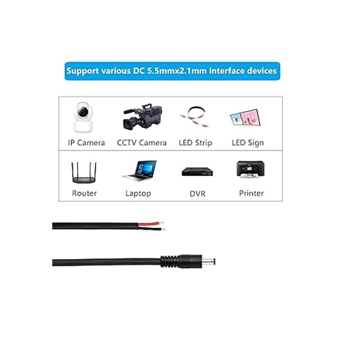 Fácil de usar: el extremo del cable de alimentación DC5521 ha sido prepelado y chapado en estaño, lo que es fácil de soldar e instalar, conectar.