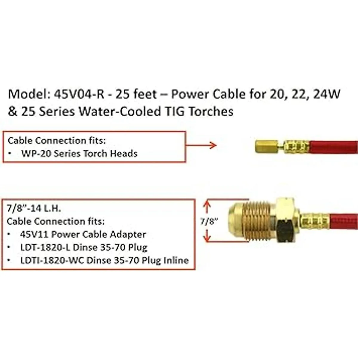 Cable de alimentación para antorchas TIG refrigeradas por agua serie 20 25 pies Super Flex rojo trenzado Modelo 45V04R