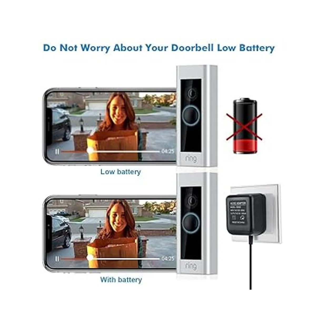 Cómodo y sin complicaciones: este adaptador de corriente para timbre mantendrá tu dispositivo constantemente cargado y ya no necesitas quitar tu timbre para cargar la batería.