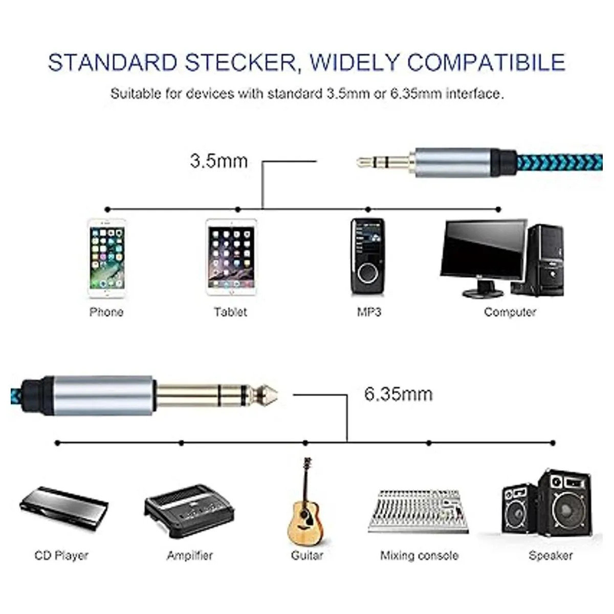 Cable de audio estéreo TRS de 0.138 in a 0.250 in para adaptador de auriculares Hftywy de 18 a 14, cable adaptador de auriculares de 6,35 a 3,5 para guitarra, piano, amplificadores, dispositivos de cine en casa o consola de mezcla