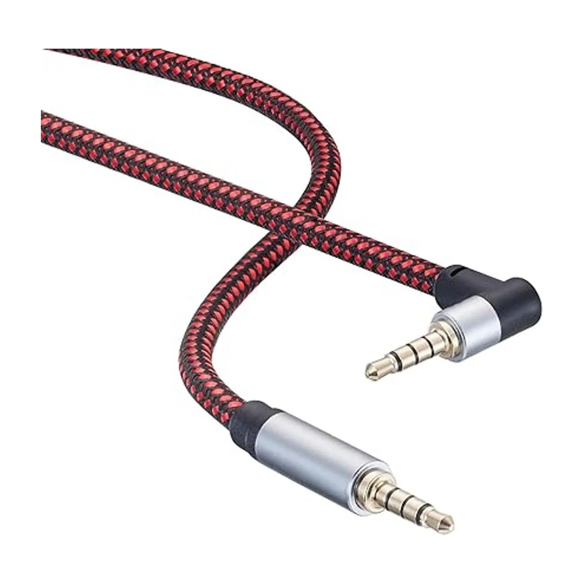 Cable de audio macho a macho de 6 pies, 90 grados TRRS 0.138 in 4 polos de nailon trenzado estéreo Auxiliarcable auxiliarcable auxiliar para auriculares, PS4, teléfono, tabletas, auriculares, PC, ordenador portátil y más 6 pies