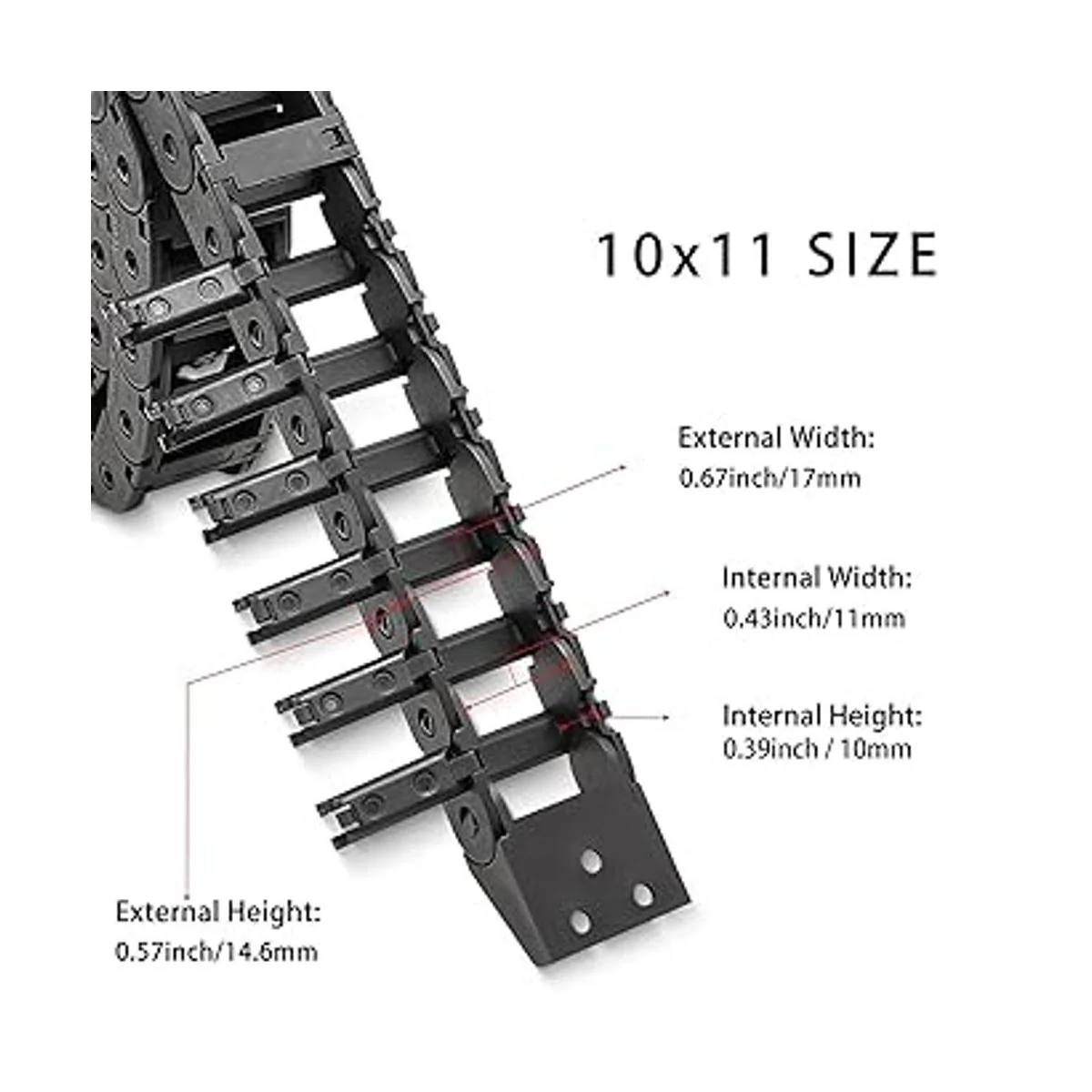 Cable de cadena de arrastre R18 de 39.3 pulgadas, 0.394 x 0.433 in, plástico negro abierto para fresador CNC e impresora 3D, cable portador de alambre con 1 par de conectores, 1 destornillador, 12 tornillos
