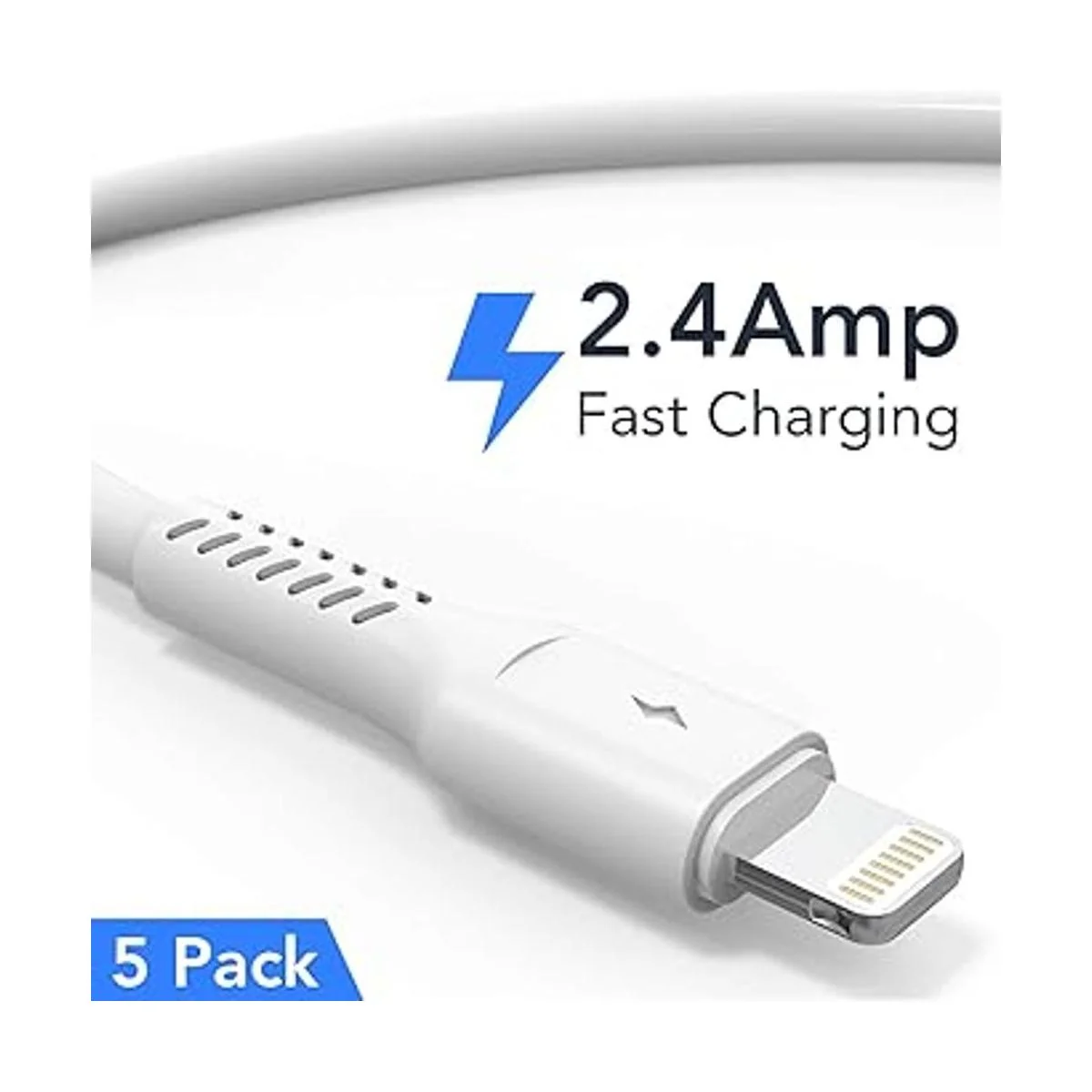 Cable de carga corto para iPhone de 6 pulgadas, 0.5 pies, paquete de 5 cables USB a Lightning para estaciones de carga rápida compatible con Apple iPhone 12 11 Pro Max Xs 8 7 6 5 Plus, iPad AirMini