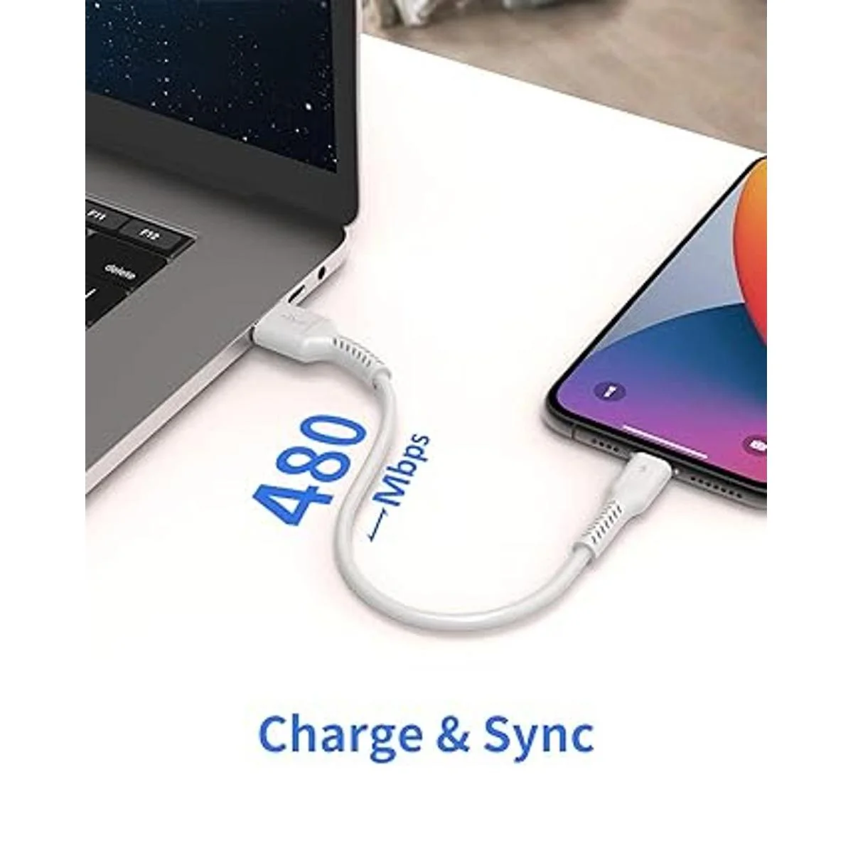 Longitud portátil: 0.5 pies de largo para cargar tu teléfono con batería externa o estación de alimentación; antienredos, fácil de llevar. Este cable USB a Lightning puede soportar más de 10000 pruebas de flexión y es más duradero.