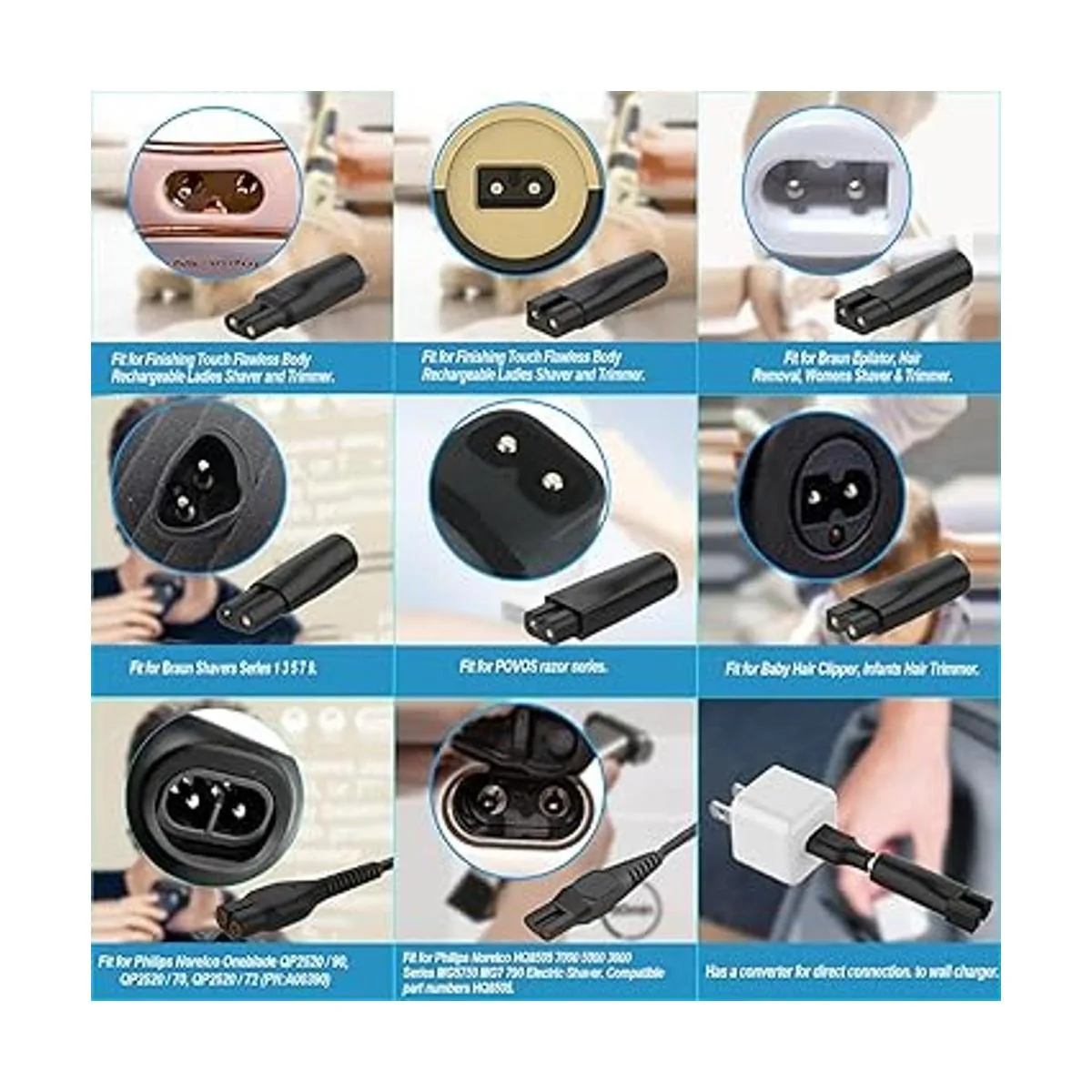 Accesorios del producto: recibirás el cable de alimentación HQ8505 A00390, cable USB CC de 5 V, adaptador USB y 6 conectores de afeitadora diferentes. Puedes llevarlos a cualquier lugar fácilmente y cargar la mayoría de las afeitadoras con todas las interfaces USB.