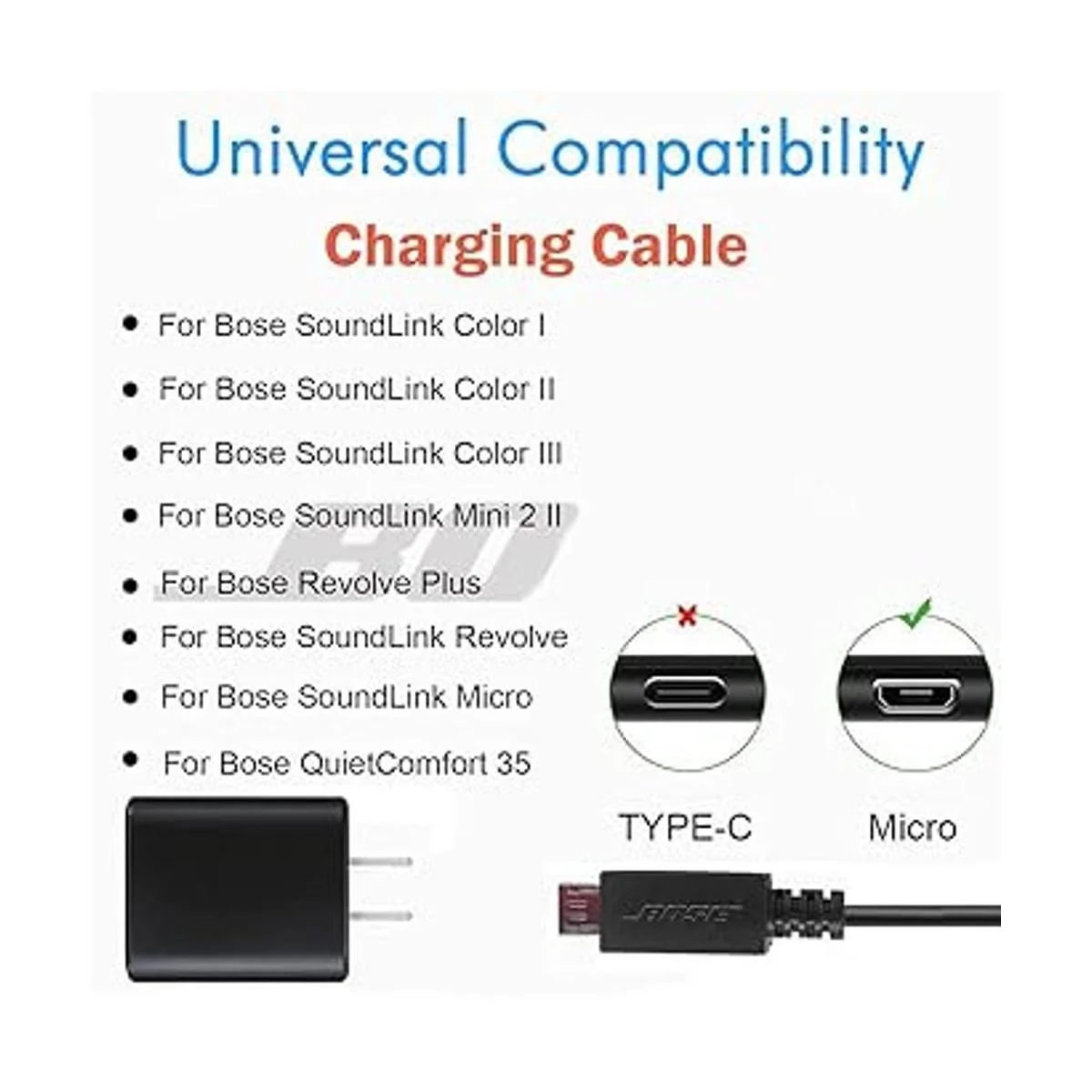 Los dispositivos compatibles son: el cable de carga micro USB es compatible con Bose Sound Link Color I II III, auriculares inalámbricos Bose SoundLink, Mini II, Revolve Plus cable de carga de altavoz Bluetooth.