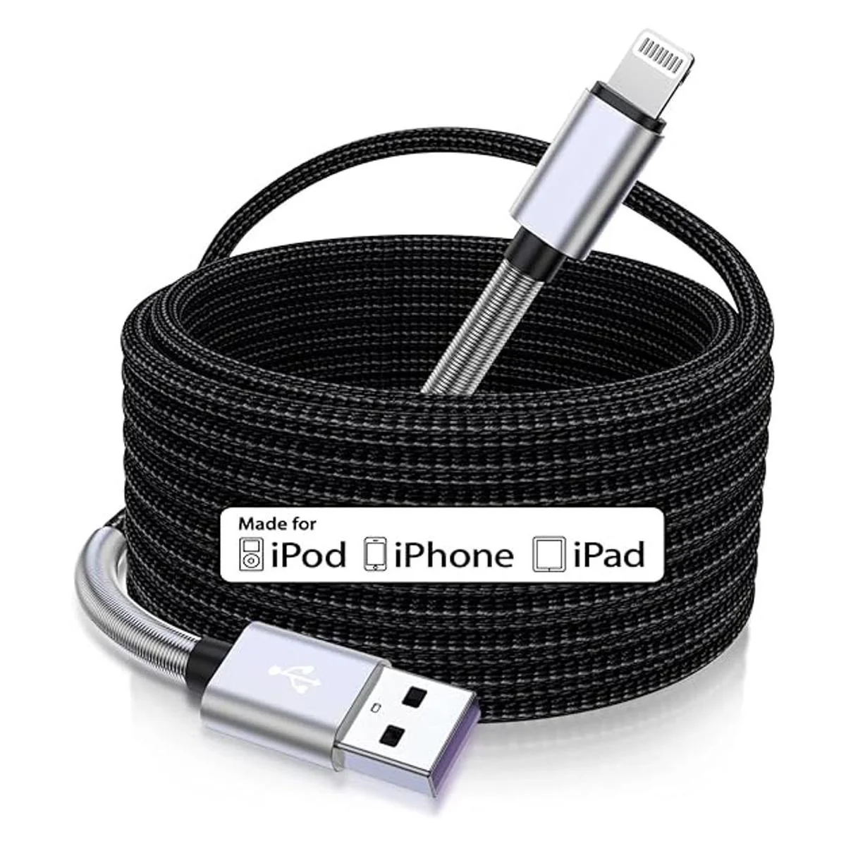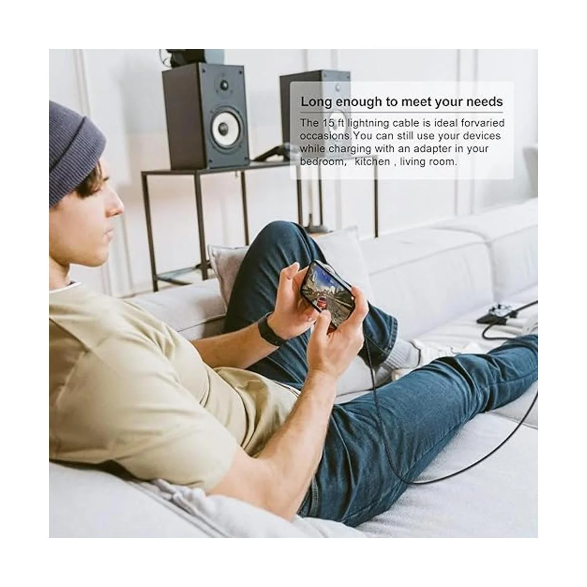 Lo que obtienes: cable para iPhone incluyendo 15 pies 1 paquete con mucho tiempo para muchas ocasiones, carga dispositivos Lightning en dormitorio, sofá, cocina, coche y oficina con mucho menos restricción en la longitud.
