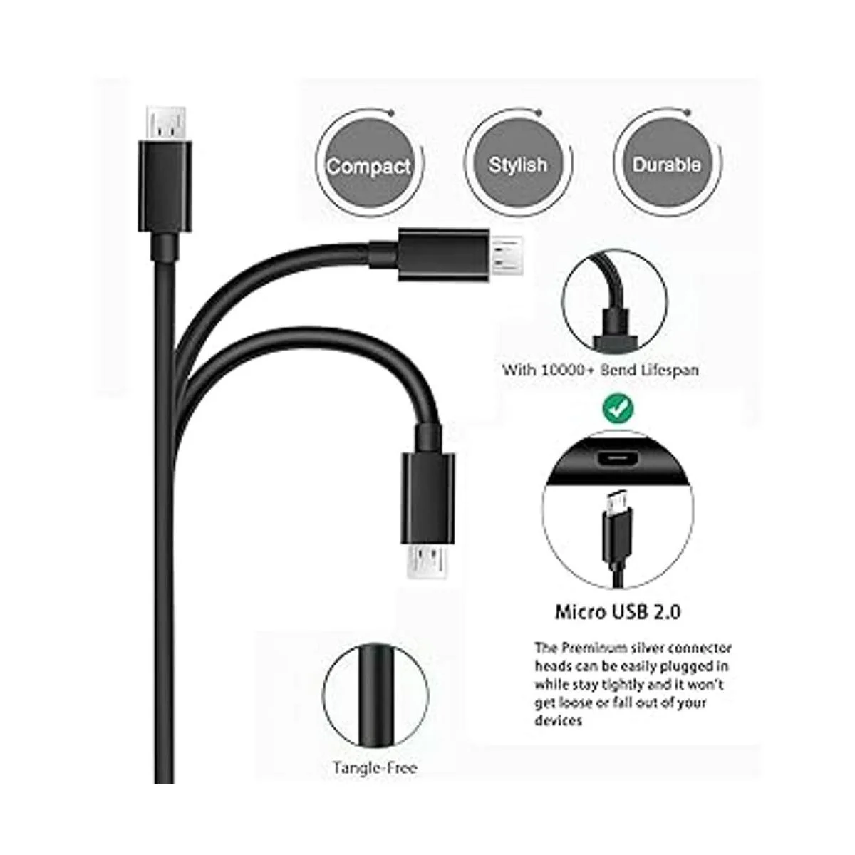 2. Nota: No apto para teclados con puertos USBC y tipo C. Cable de carga profesional que pasa más de 1000 pruebas de flexión. Conectores compactos para garantizar una seguridad sólida. El cable conector de alta calidad garantiza una carga firme, conexiones de alta calidad entre dispositivos conectados y una velocidad de carga rápida.