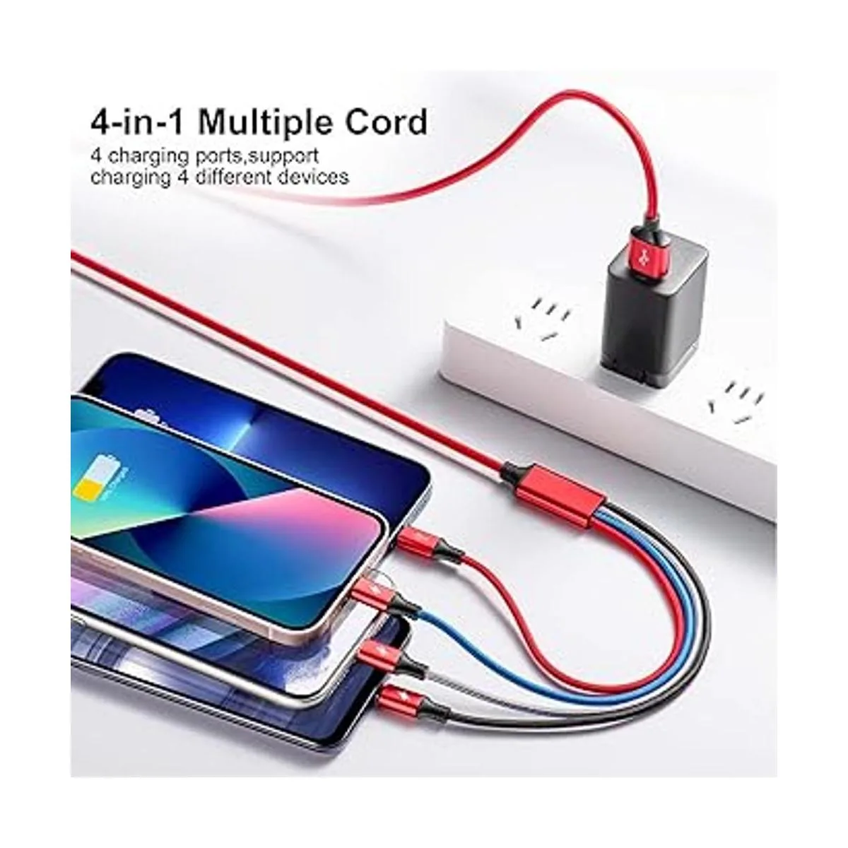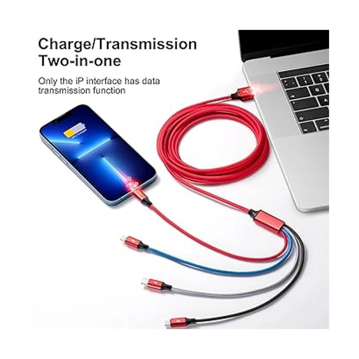 Cable de carga múltiple 4 en 1 4A Paquete de 2 cables de carga USB de 10 pies con 2 puertos IPtipo Cmicro USB para teléfono 13, 12, 11 Xs Xr X 8, 7, 6s 6tabletasSamsung GalaxyHuaweiPixelSonyLGHTCPs4 5