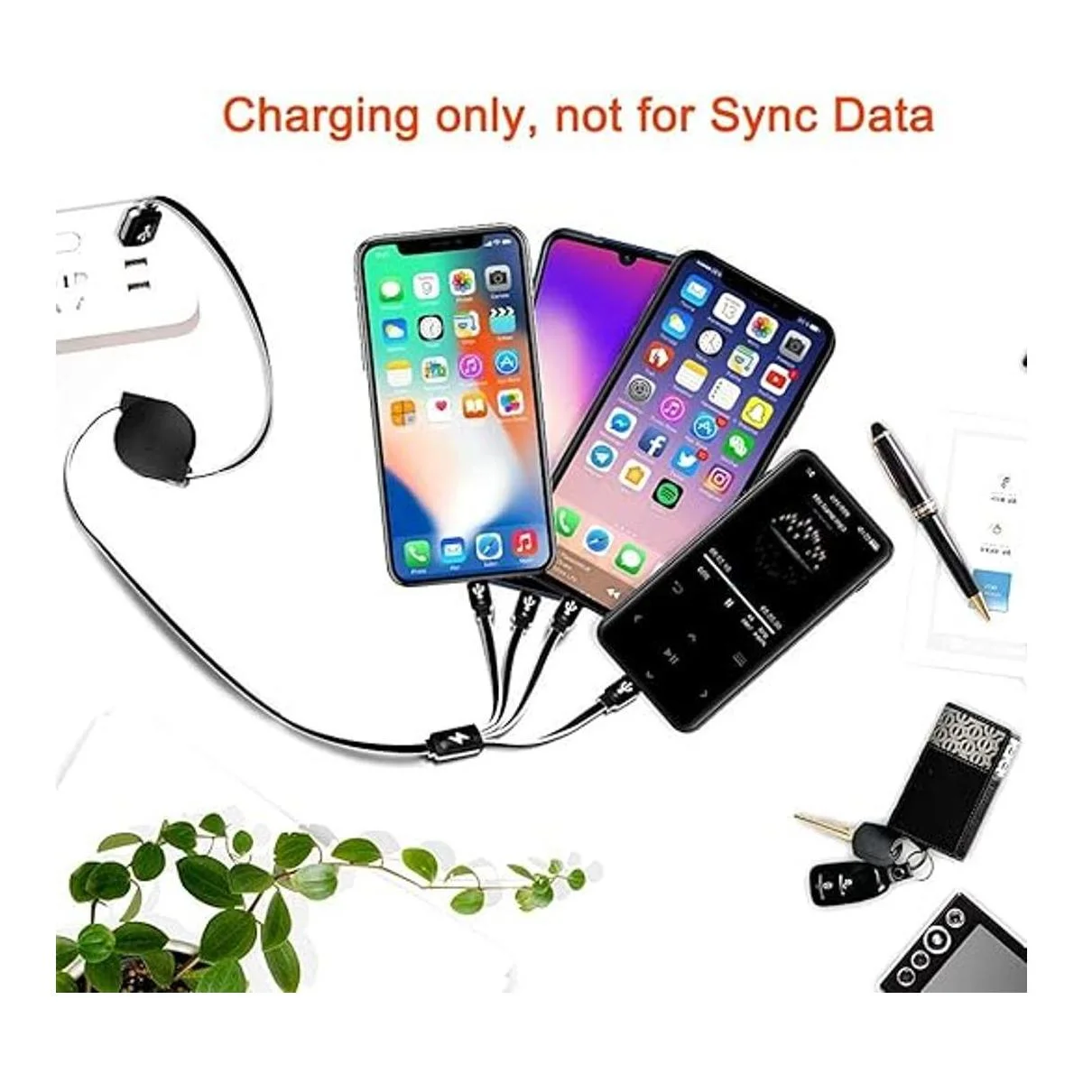 Evita enredos y es fácil de transportar: simple, ligero, portátil y conveniente. Diseño retráctil que ahorra espacio. La longitud ideal de 3.3 ft es óptima para usar en el hogar, oficina, coche, viajes y mucho más. El cable retráctil 4 en 1 es muy fácil de plegar y colocar en tu bolso, bolsa de laptop, bolsillo, etc.