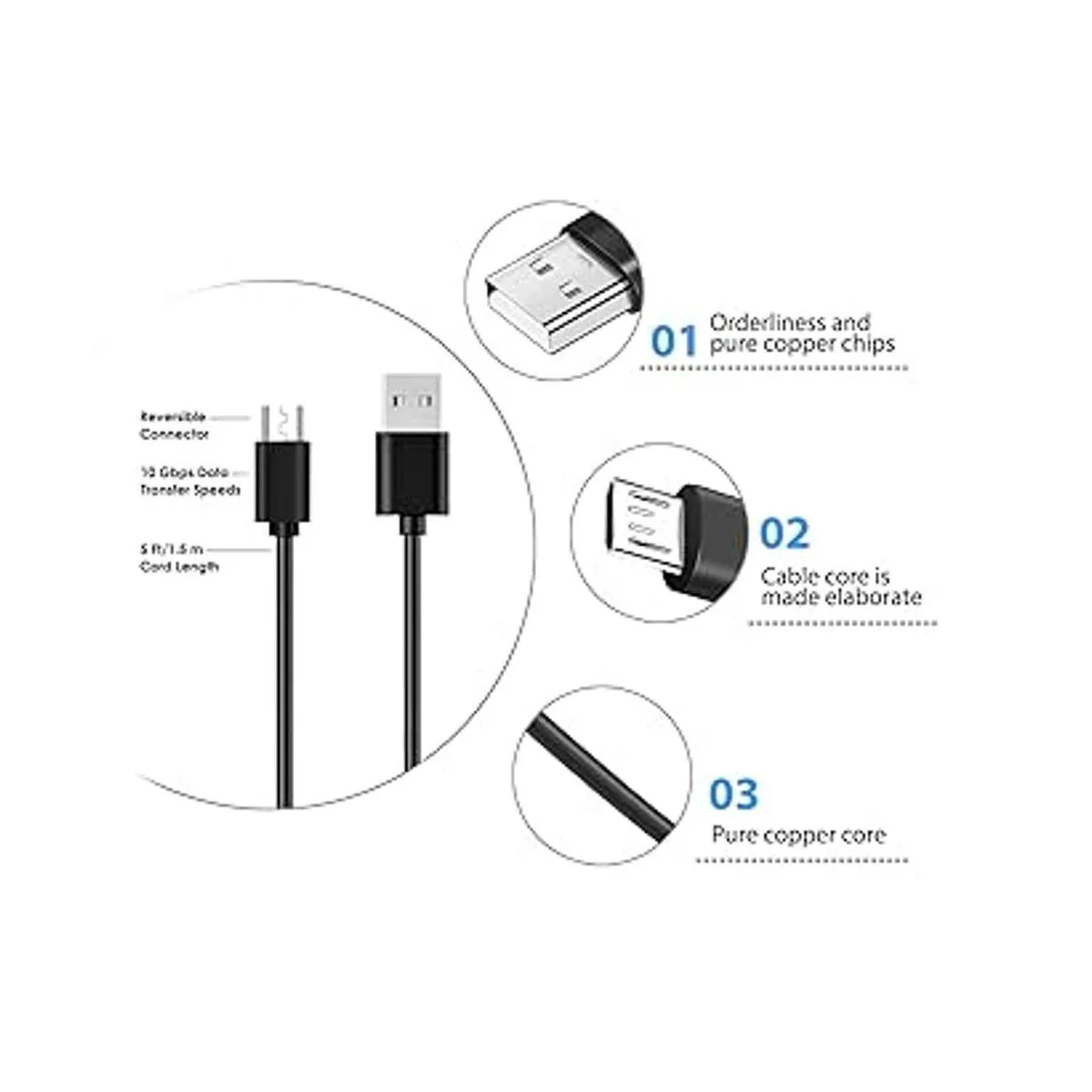 2. Carga rápida: el alambre de cobre puro de alta fina garantiza una carga rápida segura a 2,4 A máximo y velocidad de sincronización de datos de hasta 480 Mb/s. Soporta corriente máxima de 2,4 amperios. Protege tus dispositivos y cargador de daños.