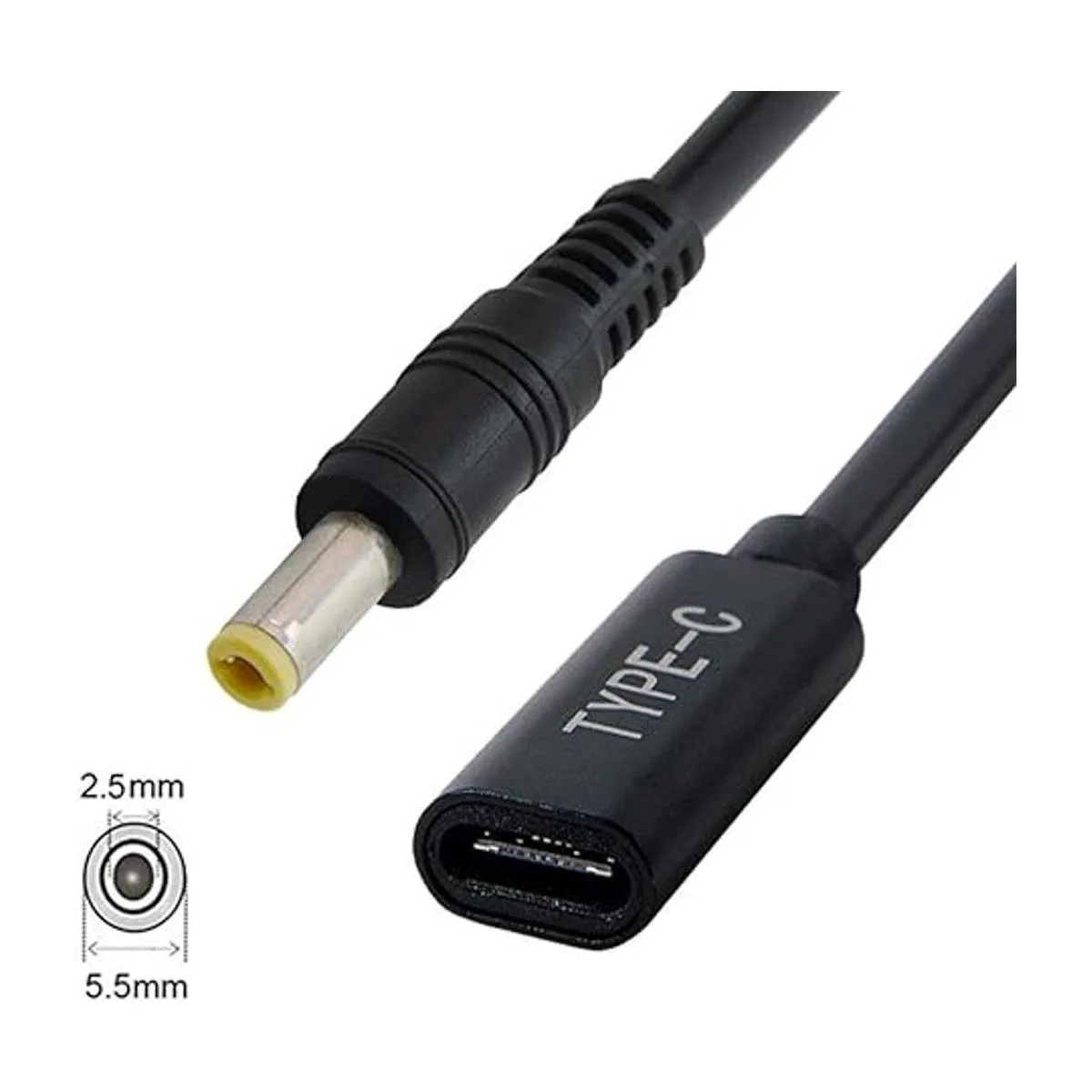Cable de carga tipo C USBC hembra a DCRectángulo para ordenador portátil 1820V, 5,5 x 2,5 mm para HP.