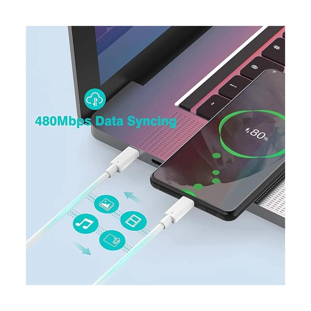 El cable USB C a USB C de 10 pies de largo te permite trabajar y cargar tu portátil en cualquier lugar, soporta sincronización de datos de 480 Mbps.