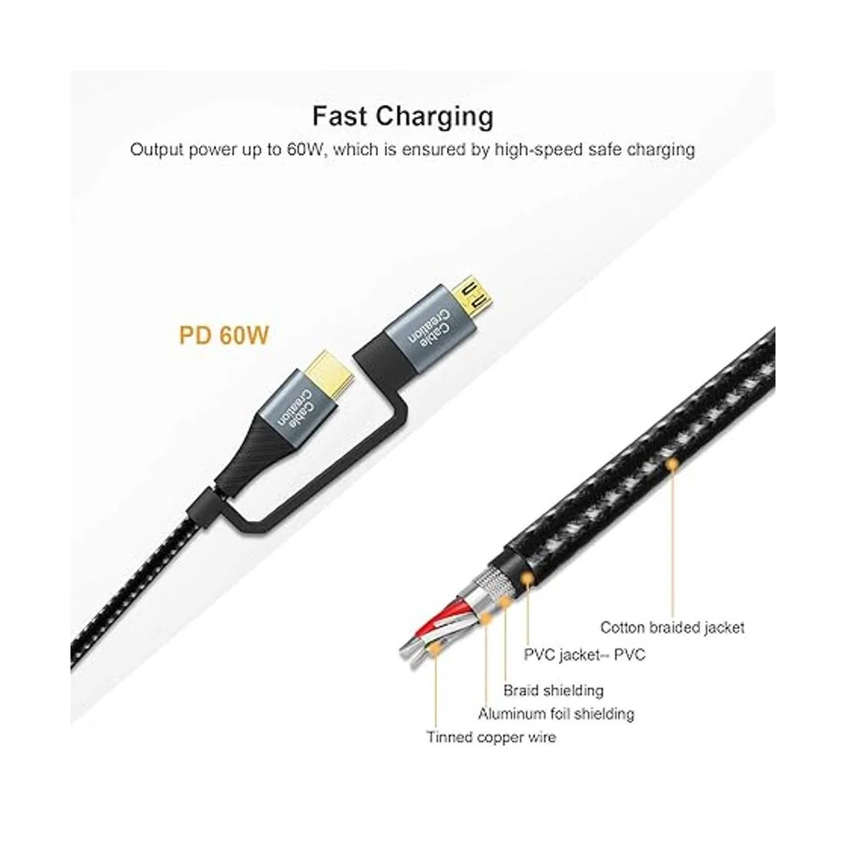 Lo que obtienes: 1 cable de sincronización de carga rápida 4 en 1 CableCreation negro. Le dimos 24 meses de soporte sin preocupaciones y un servicio al cliente amigable.