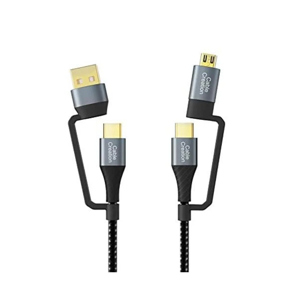 Cable de carga USB C, CableCreation 4 en 1, cable de carga múltiple PD 60 W, micro USBtipo C, carga rápida de transferencia de datos, compatible con MacBook Pro, iPad, galaxia, cámara y más, negro, 6.6 pies