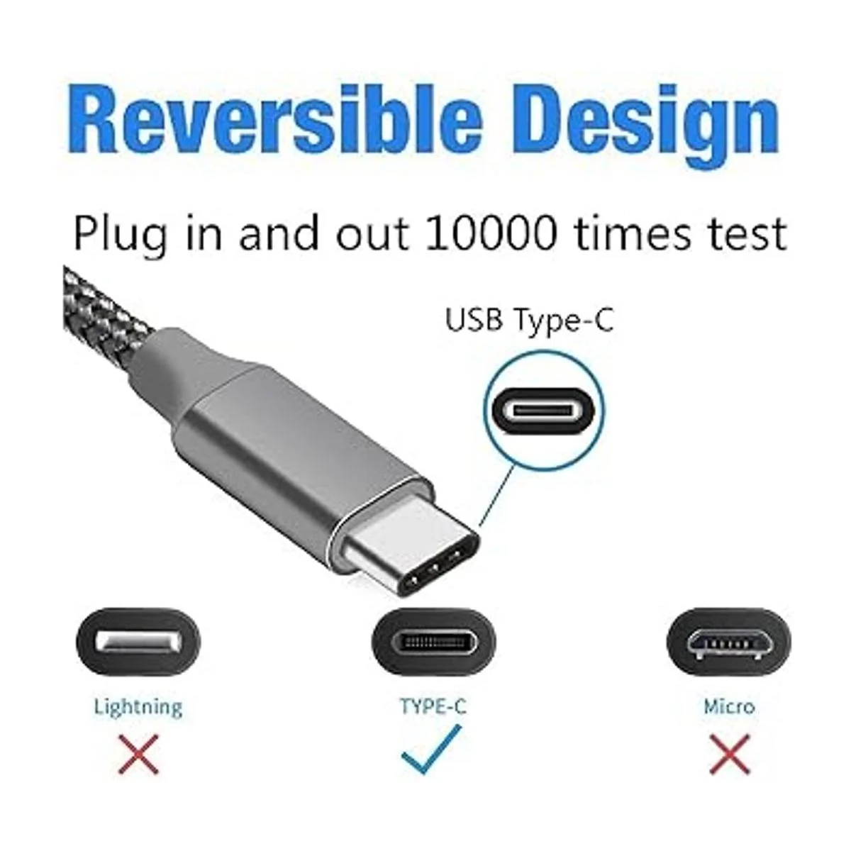 Excelente calidad: la mejor opción para tus dispositivos USBC. El cable trenzado de nailon y la junta reforzada proporcionan una vida útil duradera y un rendimiento sin enredos. El diseño especial de soporte de alivio de tensión puede soportar más de 10.000 pruebas de flexión y proteger bien la junta más vulnerable del cable USB tipo C. La carcasa de aluminio de alta calidad hace que el cable sea más duradero y se mantenga apretado en el puerto del conector tipo C. Nunca te preocupes por la calidad