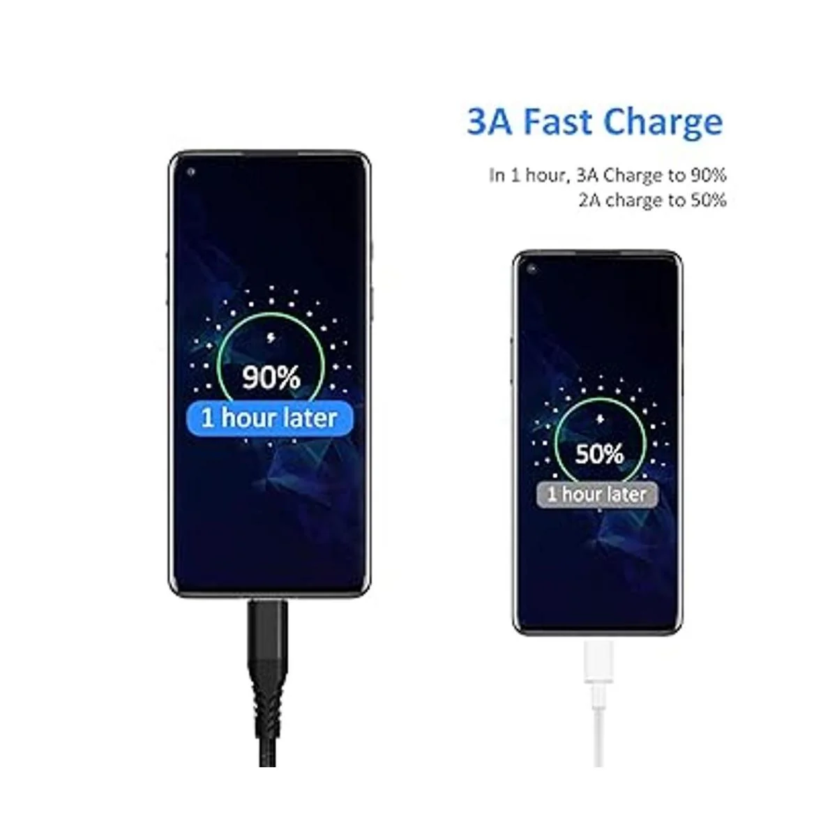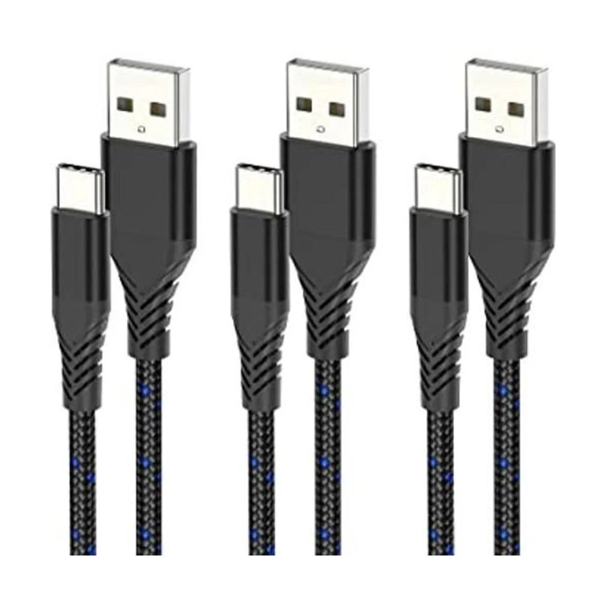 Cable de carga USB C de 3 pies, paquete de 3 unidades, trenzado USB A a USB tipo C Cable de carga rápida 3A compatible con Samsung Galaxy S22 Ultra A13 Note 10 9 Plus LG Stylo Pixel 6 Pro