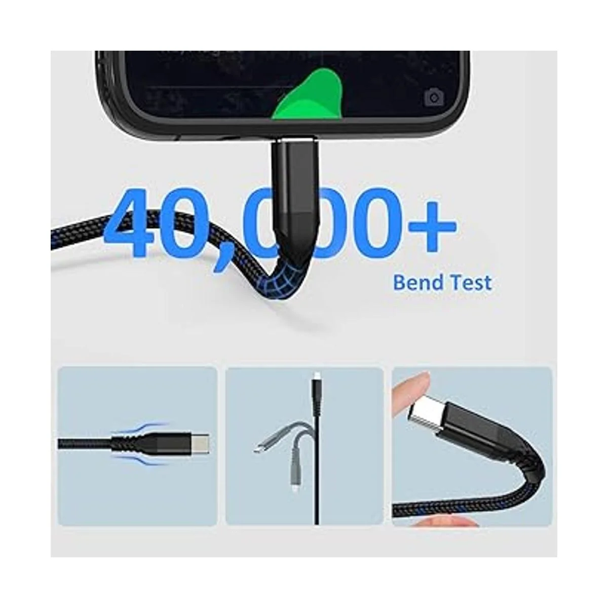 Longitud portátil: 3 pies de largo para cargar tu teléfono con banco de energía o estación de energía; antienredos, fácil de llevar. Este cable USB C puede soportar más de 10000 pruebas de flexión, y más duradero.