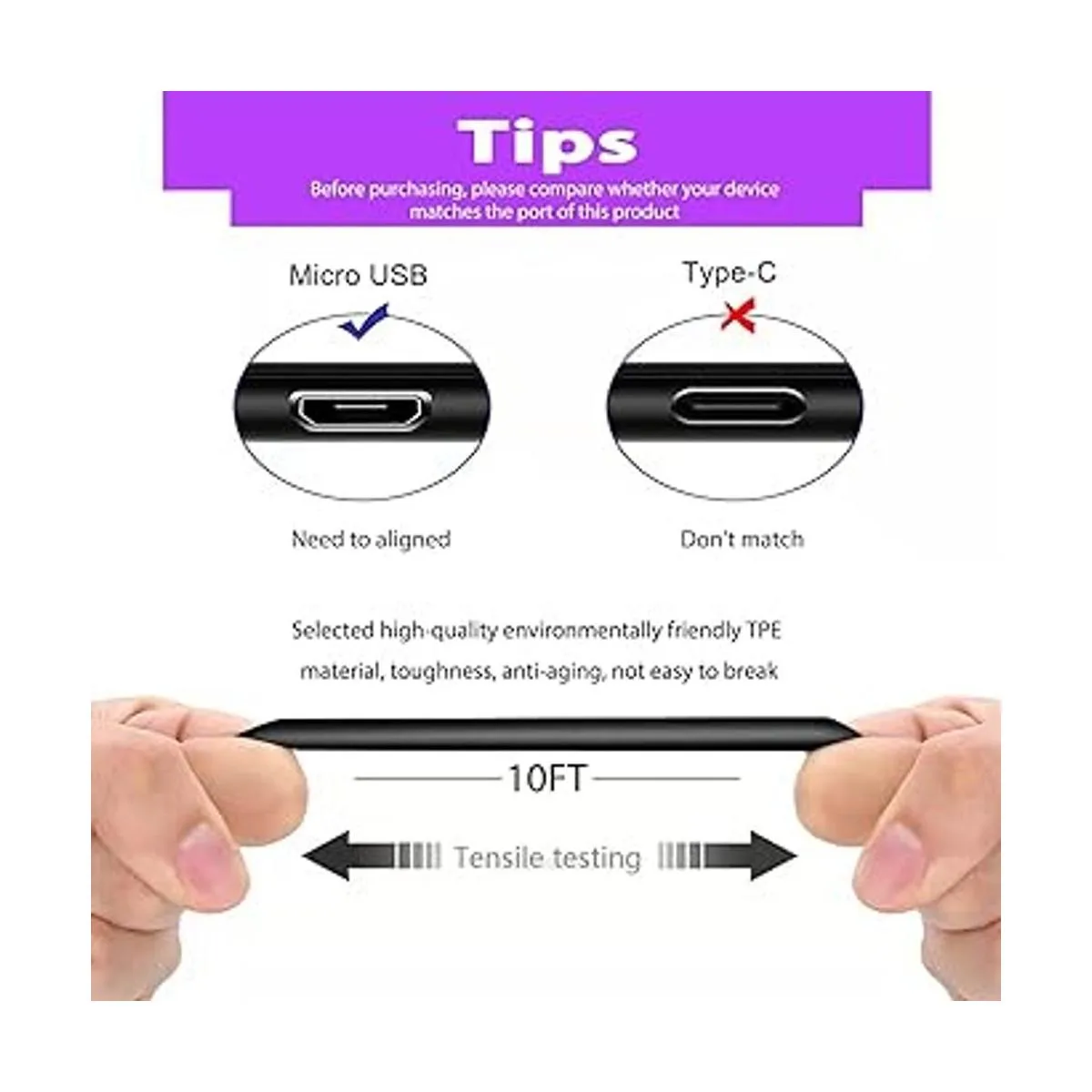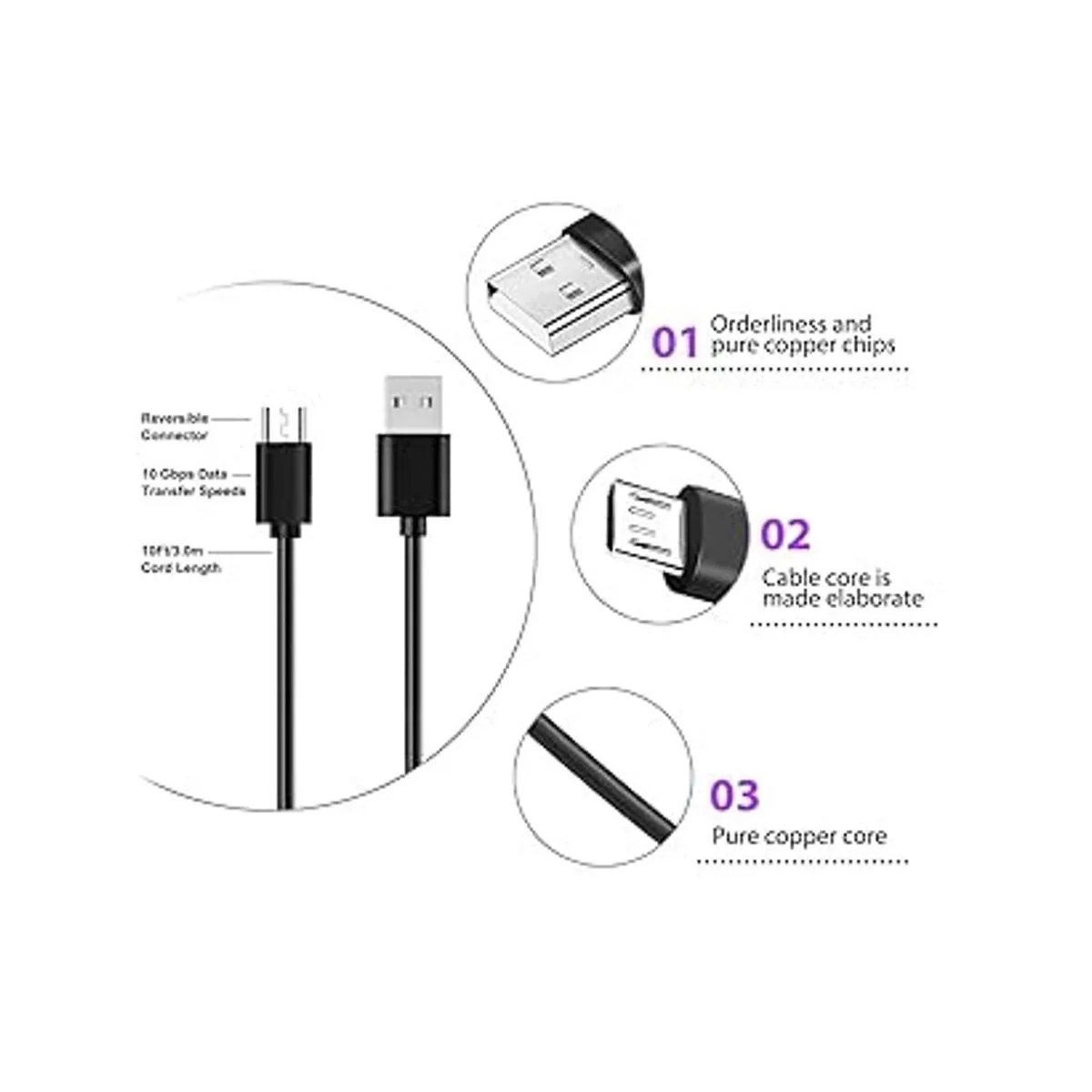 3. USB2.0 Conector USBMirco chapados en plata: carcasa de cable gruesa y núcleo de cobre de alta calidad, corriente de 2 A, la velocidad de carga del cable es 10 50 más rápida que el cable USB normal.