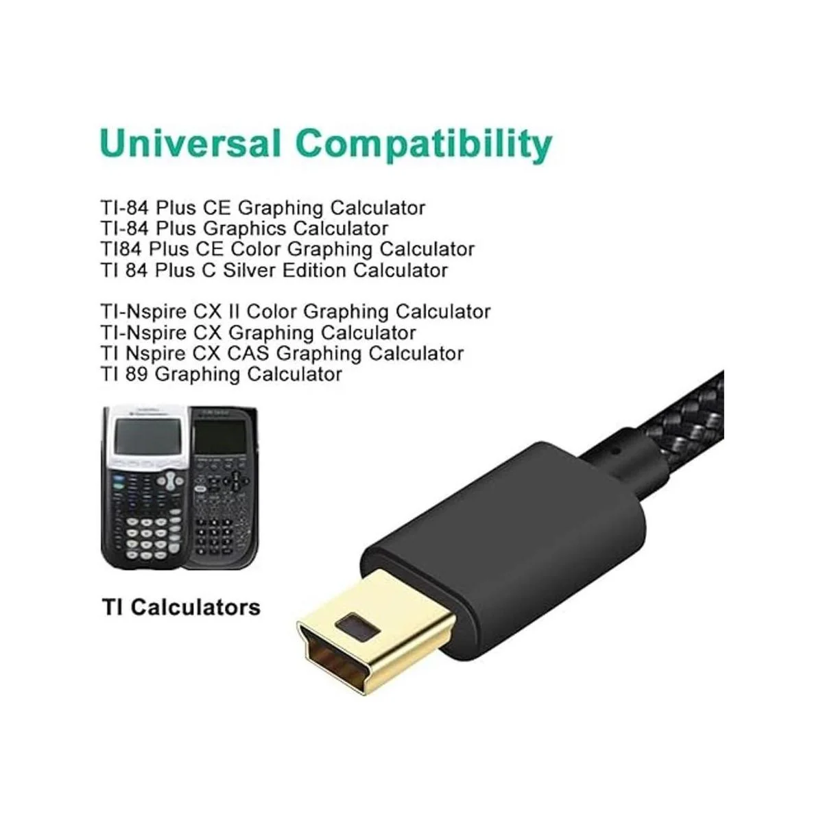 Cable de carga USB para calculadoras TI 84 Plus, TI84 Plus CE, TI 84 Plus C Silver Edition, TI 89 Titanium, TI Nspire CX y TINspire CX CAS. También conocido como: 1. Compatible con cable de carga TI84 Plus CE, 2. Compatible con cable de carga Ti84 Plus C Silver Edition, 3. Compatible con cargador TI 84 Plus CE, cable de carga Tinspire CX TI84 Plus CE.
